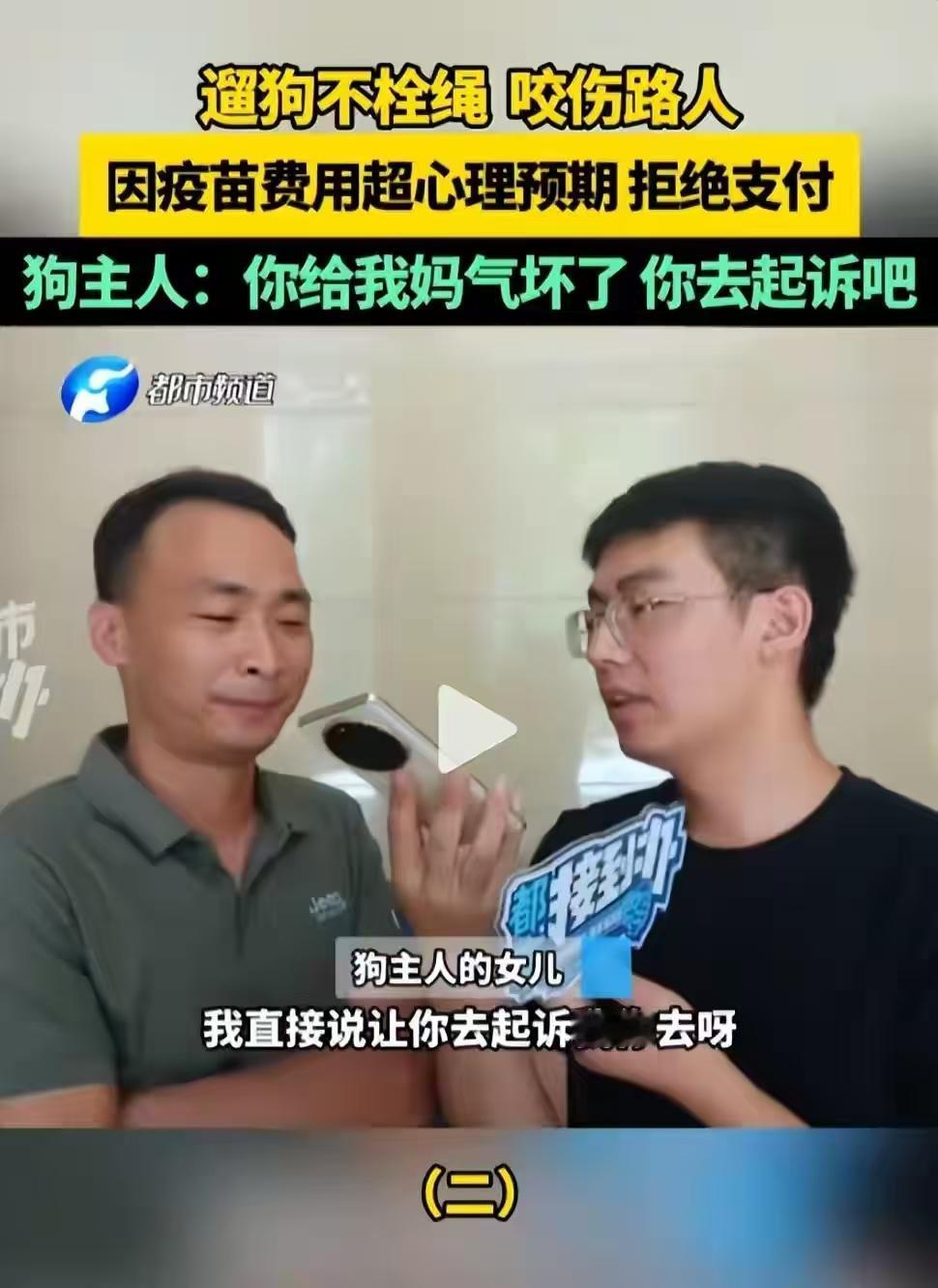 当今,违法犯规之徒最长说的一句话就是“你告去吧”,这背后体现的东西太多,太多,坏人张狂好人憋屈,违法成本太低,维权成本太高, 对坏人的处罚太轻。 对付玩狗货还换换思路了: “遛狗不牵绳,不带嘴套”是故意传播法定传染病原体学行为,属于危害公共安全罪。 无缘无故被他的狗咬了,让狗主人赔10万也不多。被狗咬了以后会提心吊胆怕哪天狂犬病会发作。精神损失费也应该赔偿。 其实有些狗主人,心比狗还要狠毒。遇见了这样的狗主人,希望被咬者,通过法律途径进行解决。不要私下和解,以便留下什么后遗症,到时将无法处理! 这就需要把狗咬人,吓人的执法力度有待大大提高,让哪些溜狗咬人的狗主人知道什么是厉害。 狂犬病毒的潜伏期长短不一,被狗咬的人一旦狂犬病毒发作必死无疑,百分之百的死亡率无药可救。 现在狗把正常人弄的没快神经啦,打,养狗人说打他儿子;不打吧,到处拉屎吓人;报案吧,说自己协商解决。狗命和人命哪个重要?不知道,糊涂了!