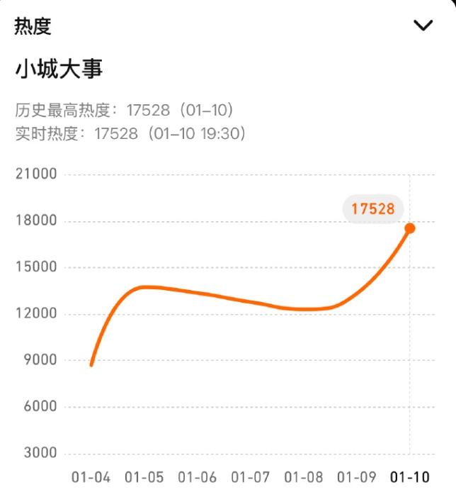 《小城大事》开播前热度17528 开播半小时已经涨到22000,2025年全年开播首日热度最高的是赵露思的《许我耀眼》,首日热度27061,接档央八《不期而遇的生活》,目前这部剧CVB大结局的收视率还没有出来,大概率在1.5-1.6%左右,酷云收视率10分钟破2%,半小时从1.1%拉升到2.6%,登顶全频道第一,第一天数据好,证明赵丽颖的观众盘确实大。