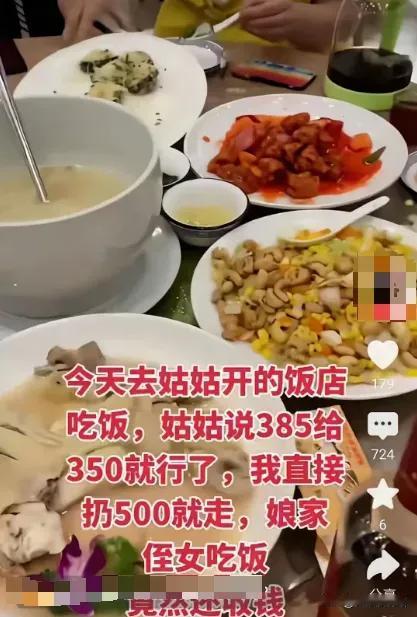 泪目!一女子带朋友去姑姑开的饭馆吃饭,买单时,姑姑说385块给350块就行了。女