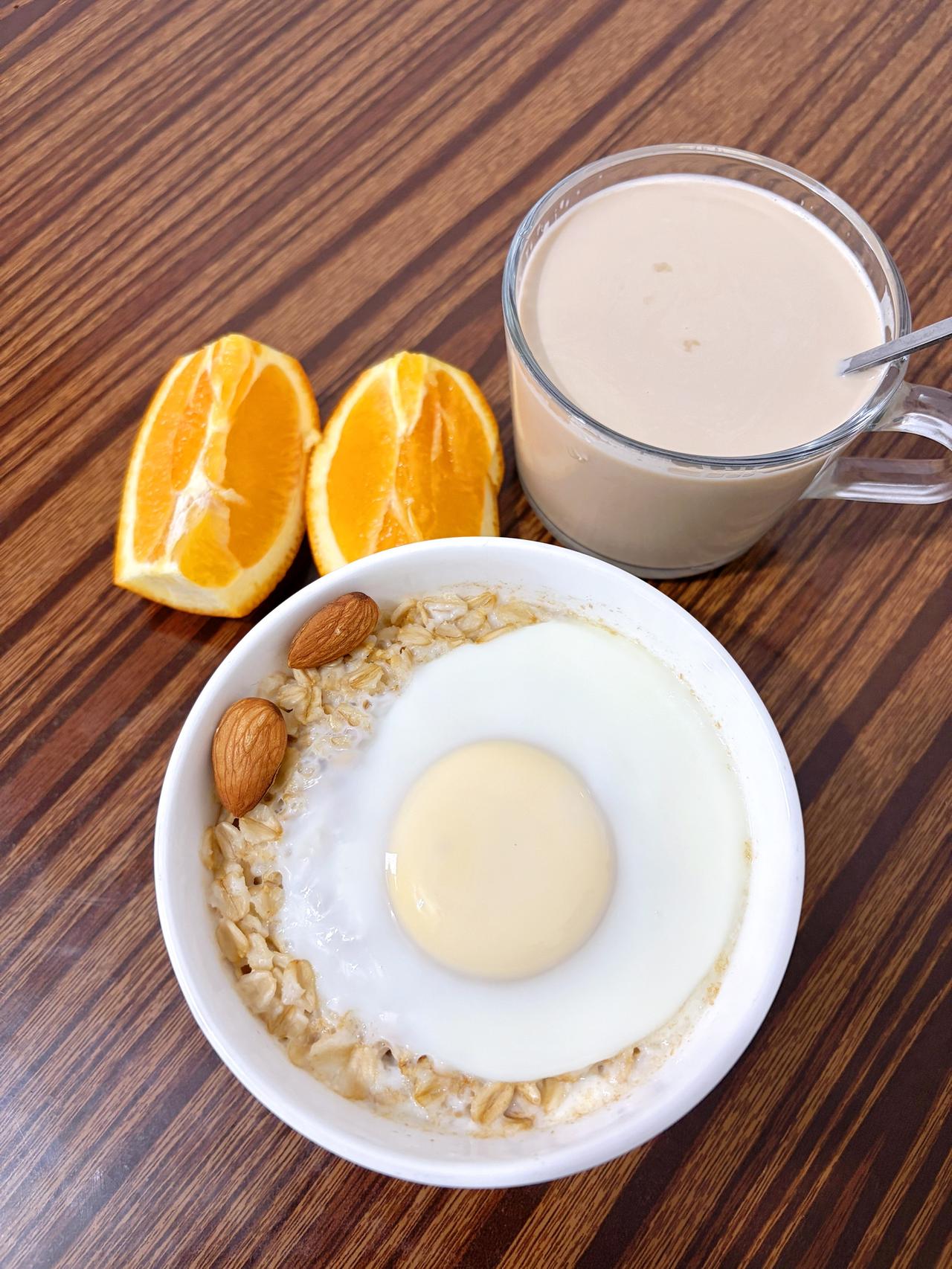 泪水打湿我的减脂餐,目标103斤,加油 今日减脂早餐:燕麦鸡蛋+干果+拿铁