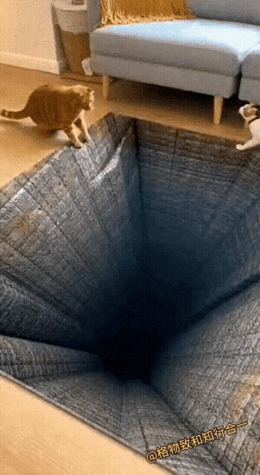 一只橘猫走到客厅门口,突然刹车,瞳孔放大,像看见万丈深渊,嗖地缩回沙发底下。 镜头里地板接缝和黑色地毯拼成一条深沟,视觉上真像裂开的大坑。 另一只奶猫却淡定来回走,像在嘲笑同伴胆小。 视频冲上热搜,五十多万点赞,网友吵翻天,有人说是贴纸整蛊,有人说是光影错觉,还有人担心猫应激。 原主只回一句“它真的被吓到了”,没解释坑哪来的,也没更新后续。 萌宠可以拍,但别把惊吓当卖点。 猫也有情绪,别为了流量让它天天踩坑。