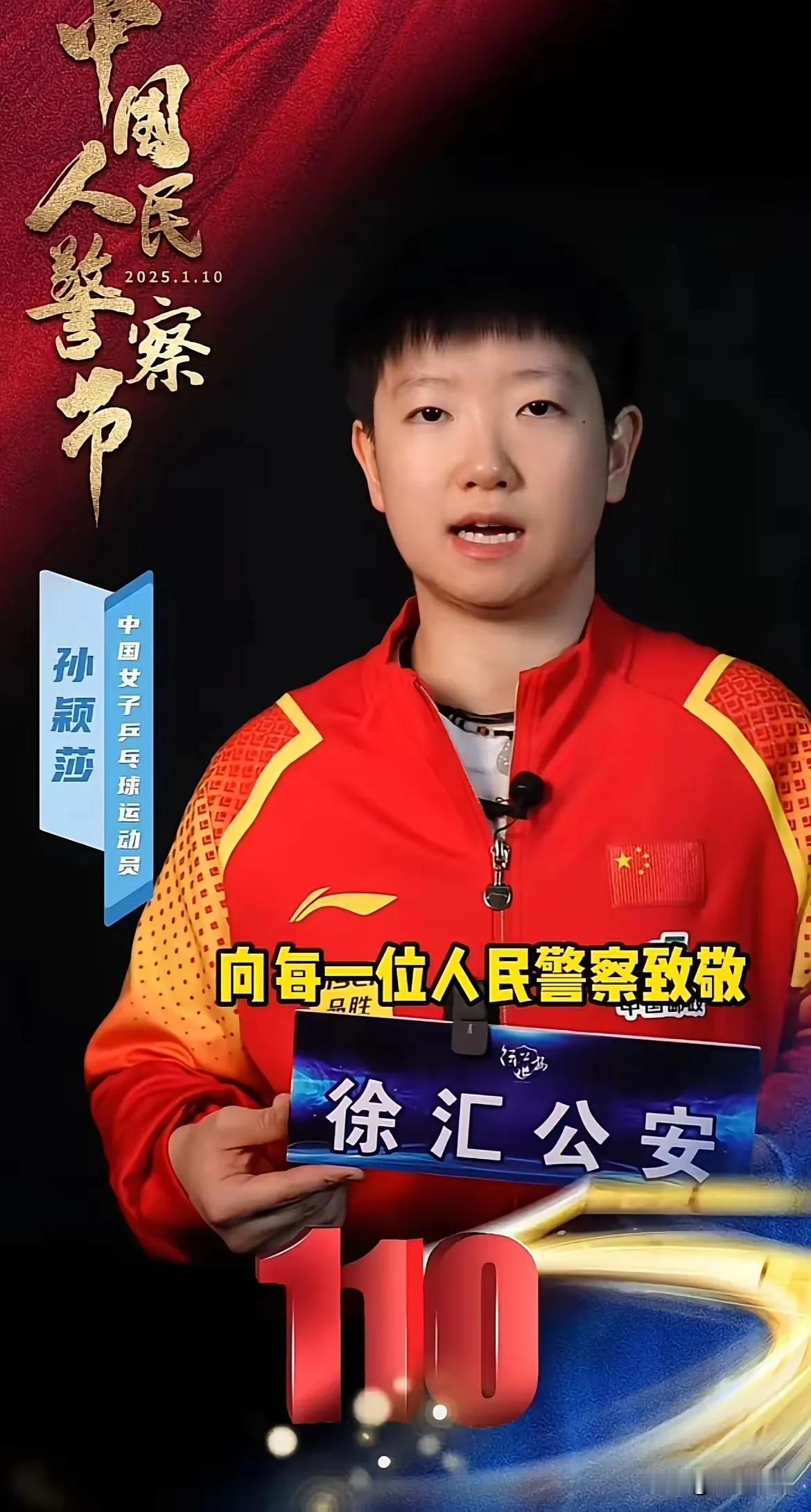 1月10日中国人民警察节,孙颖莎受公安部门邀请出镜致敬人民警察,小众代言赛道她又稳稳拿下! 早已见怪不怪,她曾是宪法推广大使、为税务发声,根正苗红获封“莎局”,口碑与实绩双过硬。 诋毁她的黑子喷子该收手了!国家法规、公安背书,全程为她撑腰,刻苦拼搏为国争光的中国十佳运动员,绝不容抹黑!