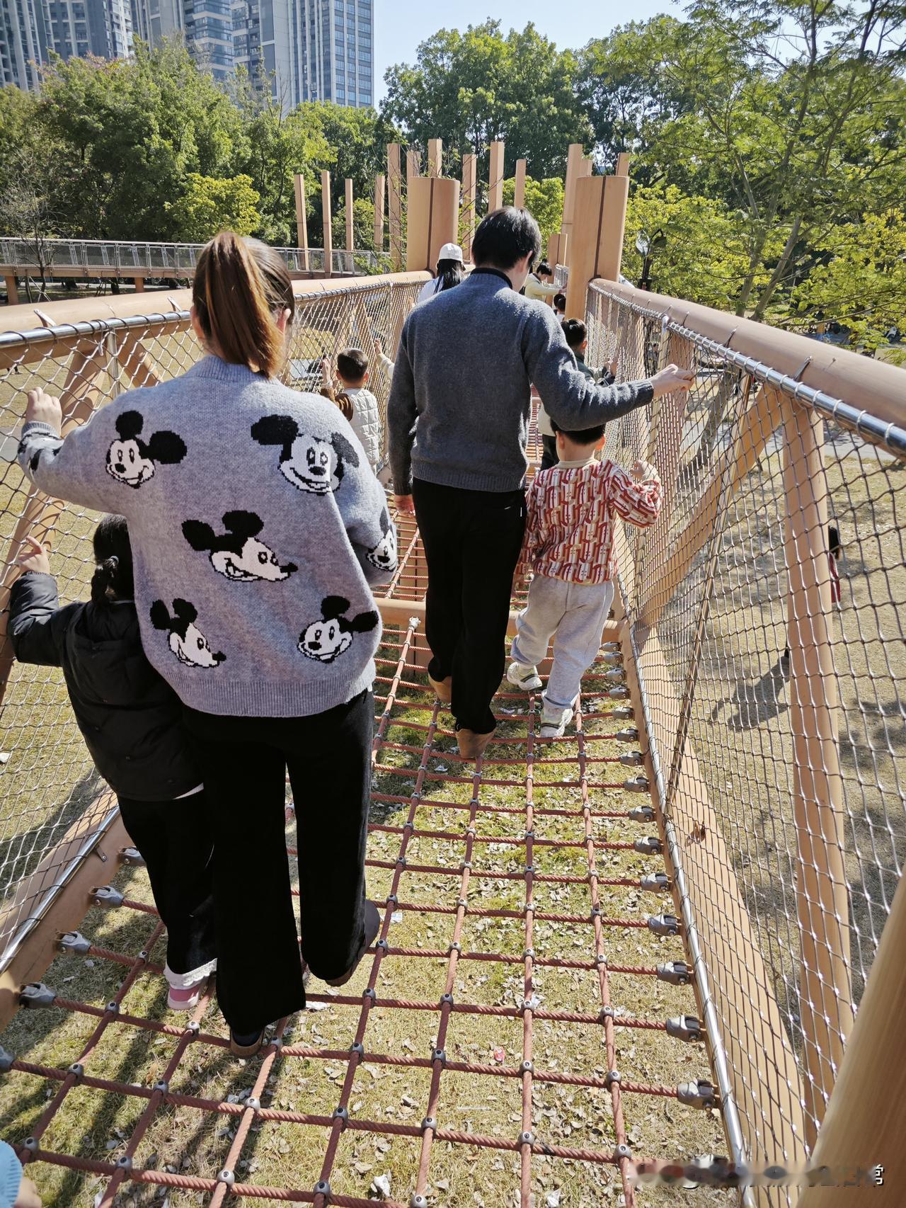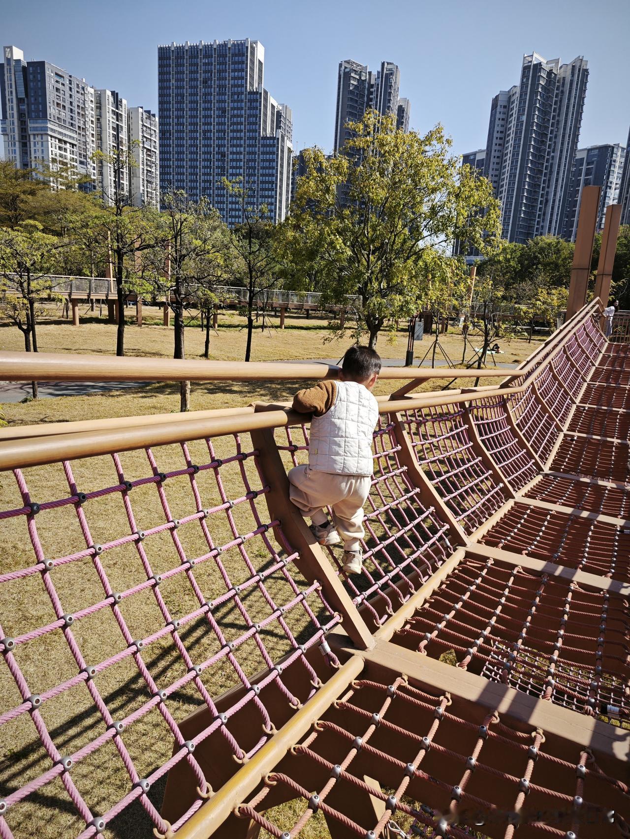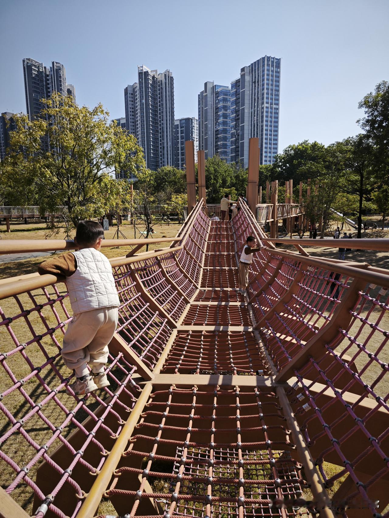 佛山最具挑战性儿童公园! 太“野”了!娃的胆量在这直接拉满 佛山爸妈们,发现一个专治娃胆小的宝藏公园!藏在市区的这个儿童乐园,巨型绳网攀爬架直接戳中我,层高足有三层楼,红棕色绳网交错成迷宫,娃抓着网绳往上爬时,手心都替他捏把汗,结果小家伙吭哧吭哧爬到顶,还冲我比耶,瞬间觉得娃的勇气值爆表! 这里的绳网步道更是考验,走上去晃悠悠的,小不点们却玩得不亦乐乎,有的扶着栏杆慢慢挪,有的干脆撒欢跑,连平时粘人的小丫头,都甩开大人的手自己闯,看着娃们在绳网里穿梭探索,真的能感受到他们在挑战中长大。 不过也有家长觉得这设施太刺激,担心娃磕碰,可我觉得适当的挑战才是成长的必修课。你觉得儿童乐园该做“安全温室”,还是留些“冒险空间”