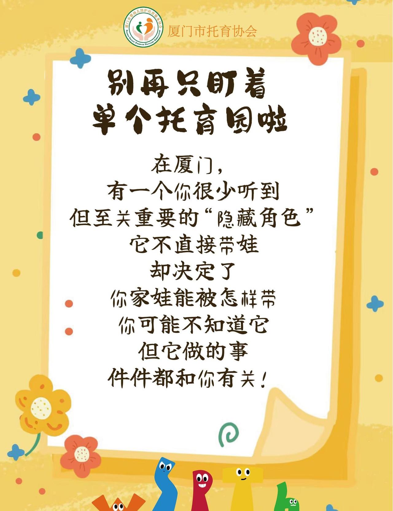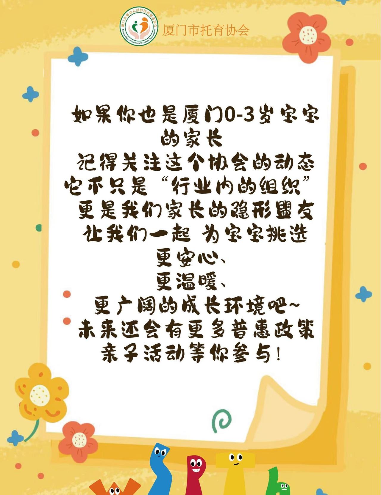 厦门市托育协会正式入驻小红书啦~ 在厦门,你知道是谁在悄悄守护你家宝宝的托育安全吗? 别再只盯着单个托育园啦!在厦门,有一个你很少听到、但至关重要的“隐藏角色”! 它不直接带娃,却决定了你家娃能被怎样带。 你可能不知道它,但它做的事,件件都和你有关~ 它是谁 它就是---厦门市婴幼儿照护托育服务会--- 托育行业的“守门人”[大笑][大笑][大笑] 不是托育园,不是早教中心,而是由市卫健委、民政局指导成立的非营利性社会组织。 [赞]成员包括育儿专家、医生、资深园长等,专为厦门0-3岁托育服务定标准、保质量、护权益。 它做了什么? 立规矩:给托育园“定考题” 制定《厦门市托育服务设施配置导则》 让托育园环境、安全、卫生都有标可依。 发布《厦门市婴幼儿托育服务合同(试行)》避免霸王条款,让你的权益写进合同里。 开展“星级评定”,给托育园打分挂牌,五星、四星…帮你一眼识别靠谱园所。 培专业:让带娃的人更会带娃 组织托育负责人、保育师系统培训,持证上岗更规范。 开设“乳儿班照护”“感统训练”等专项课,提升行业技能。 联动高校培养人才,让未来带娃的老师更专业。 护权益:让托育更透明、更安心 联合银行、保险公司推出托育专属保险/贷款,机构运营更稳,家长更放心。 定期调研行业状况,向政府反馈真实问题,推动政策更贴心。 开展“普惠托育宣传月”“亲子共读推广”等活动,把科学育儿知识送到你身边。 为什么你需要知道它? [ok]选托育园时,它是靠谱的“星级评定”官; 签合同时,它能给你提供规范的合同避坑指南;[加油]遇到问题时,它能给你撑腰! 它让厦门托育环境更安全、透明、有温度—这才是真正的“育儿友好城市”底色。 如果你也是厦门0-3岁宝宝的家长,记得关注这个协会的动态。它不只是“行业内的组织”,更是我们家长的隐形盟友。 让我们一起,为宝宝挑选更安心、更温暖、更广阔的成长环境吧~未来还会有更多普惠政策、亲子活动等你参与! 你想了解厦门哪家托育园?留言告诉我,下次我们可以聊聊托育是不是就是看孩子? 厦门市托育协会 托育 早期教育 守护孩子成长 育儿新视角婴幼儿照护 婴幼儿 厦门宝妈 厦门托育
