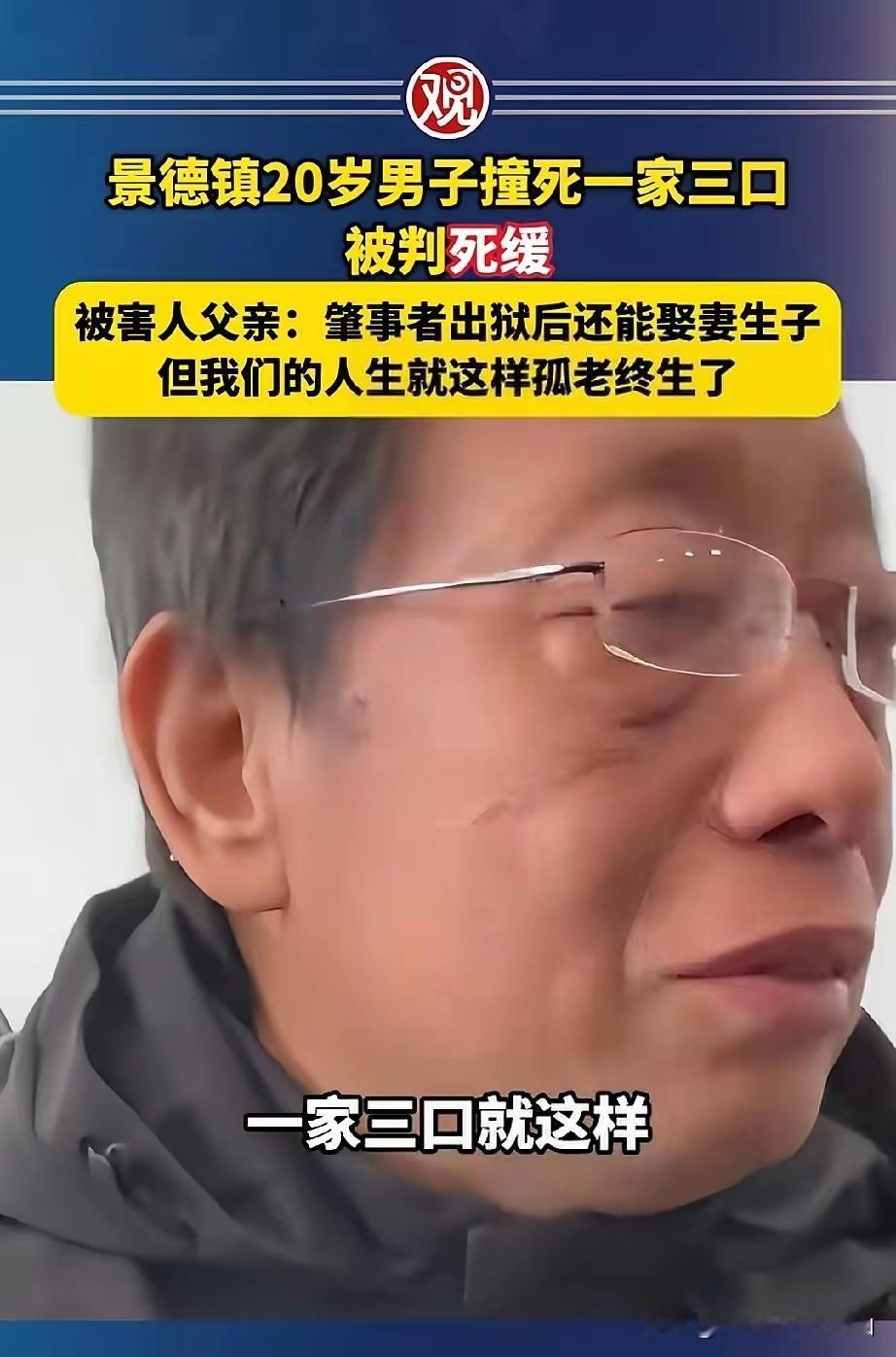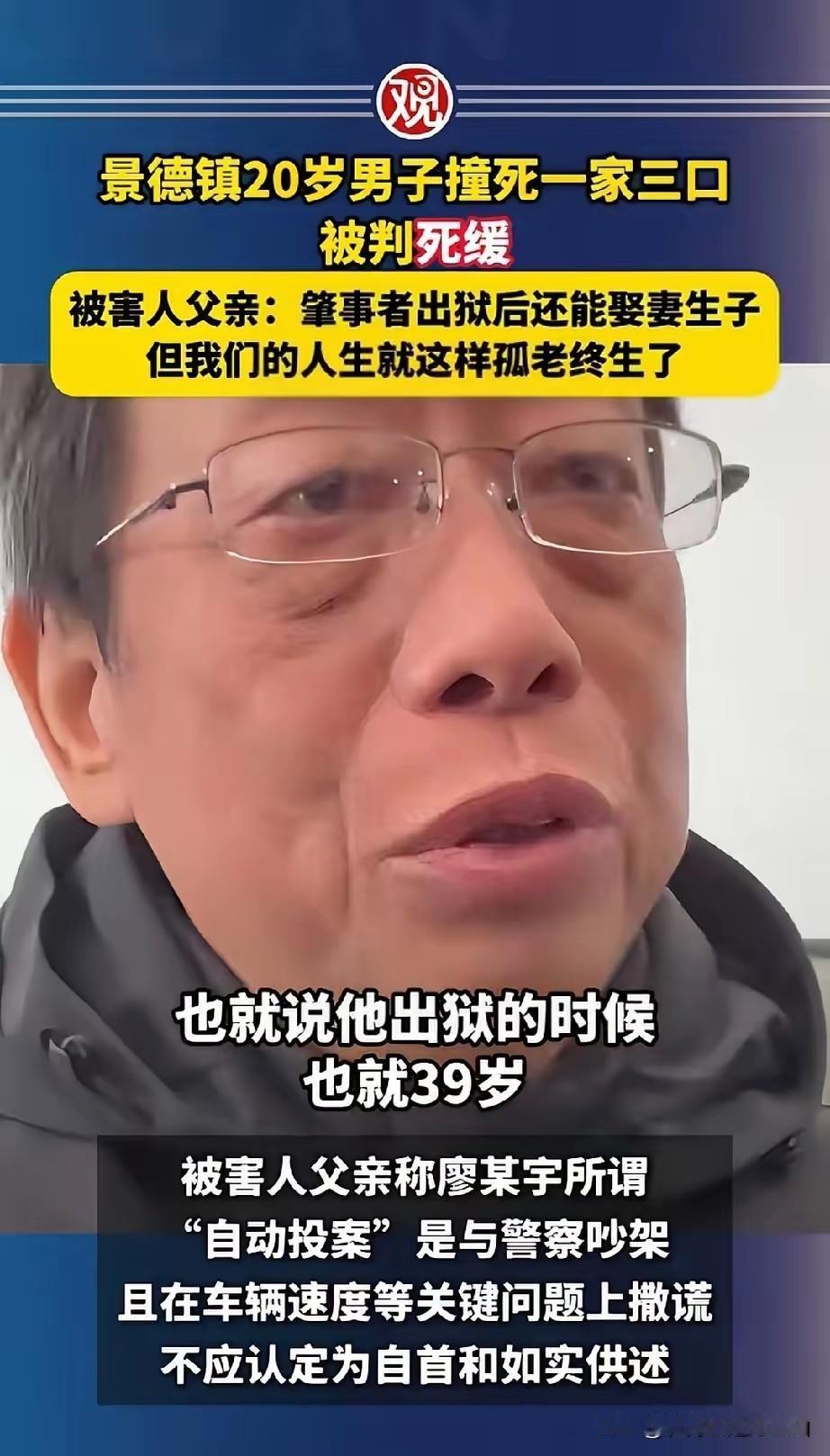 ​廖某宇在景德镇飙车128码灭了一家三口,一审判个死缓,被害人的父亲说:“廖某宇