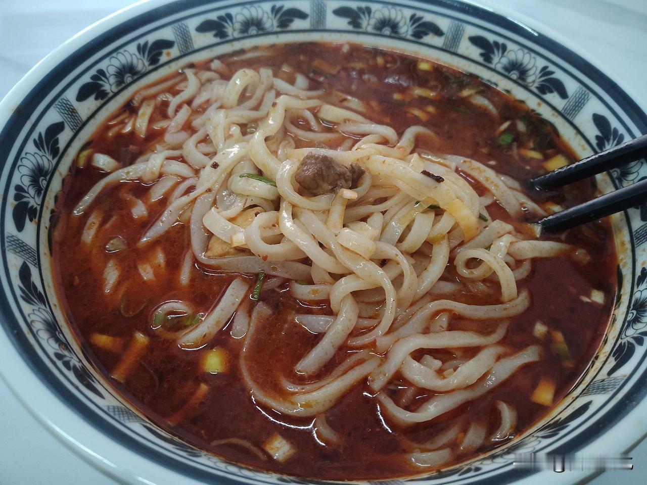 突然,小区门口有了一家手擀面。于是,在下午四点蹙了进去。进去时,只见一胖胖的年轻女人正在擀饭,一麻利的小伙正在做汤。 要了一碗臊子面,不一会他俩就做好了。看样子是夫妻俩。 面条筋道,切得特均匀。汤也挺好,洋芋丁绵绵的,豆腐丁适口,尤其是几颗臊子,特别好吃。汤里面还有少许木耳碎、黄瓜碎。葱末和香菜末也不少。 这一碗面8元,比起8元的牛肉面,却不知要实惠多少。于是,接连两天吃了三顿。