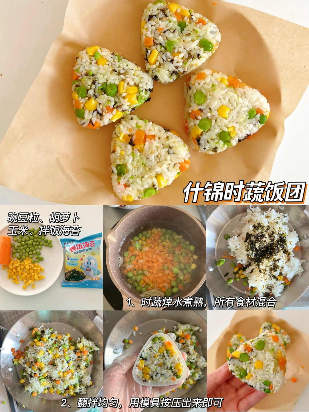 今天分享几款好吃又简单的饭团,别说宝宝爱,我都超级爱吃,因为好好吃哈哈哈,有肉有菜有米饭,一口下去太满足了,妈妈们可以做成各种形状,小朋友真的超级有兴趣✌️
