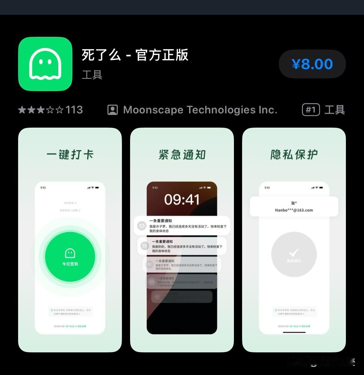 这几天好有一个朋友都要我注册一个APP,名字和一个外卖平台有点相似。 名字听起来有点滑稽,感觉有点丧,叫死了么,原因是这个朋友最近失恋了,死去活里得了那种,说自己有点抑郁,有点那啥的倾向。 这个软件功能其实挺简单,说白了就是为独居或者情感受挫问题的人推出的,你可以设置紧急联系人,然后你就只需要在APP上每天打卡,然后剩下的就交给系统。 如果你连续第三天不在系统上打卡了,系统就会提示紧急联系人。 个人感觉这个软件特别适合独居老人,但是老人应该也不太会用,主要是这个软件在一些群体还比较火,但是我感觉也没啥用,如果真出现点啥情况,这连续几天过去了估计也来不及了…… 关键是这个软件在苹果上还是收费软件……