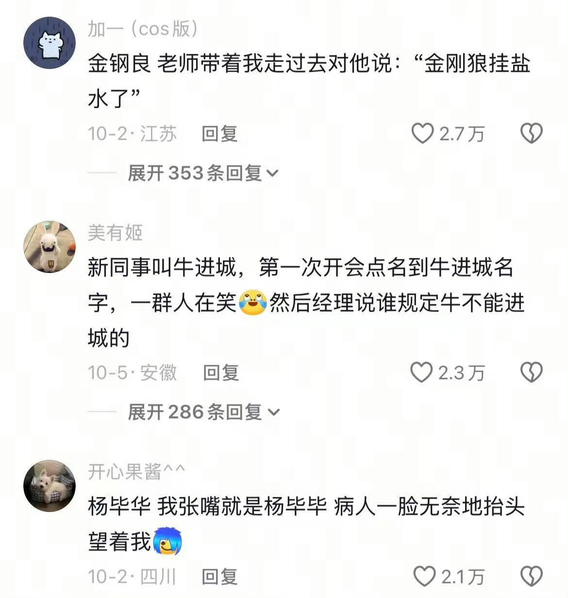 新同事叫牛进城,第一次开会点名到牛进城名字,一群人在笑,然后经理说谁规定牛不能进城的