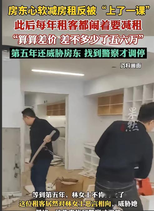 “这就是人性”!浙江杭州,女房东看到租客生意不好,家里还有人生病,于是心一软,当年给租客减免了15000元房租。没想到,租客不仅不知道感恩,反而每年都闹着要减房租,四年下来,女房东给减免了五六万。第五年,女房东不肯再减免房租,可谁知租客竟直接对她恶语相向,甚至还威胁她。女房东实在没办法,这才选择了报警。   浙江杭州,一场本不该发生的纠纷,源头却来自一次出于善意。   王女士(化名)将自己不用的地方出租给一位做小生意的租客,起初双方相处还算融洽,合同、租金都按约定执行,后来,租客登门拜访王女士,面露难色地倾诉,当下生意举步维艰,店铺流水锐减,偏偏家中又有亲人生病,高额医药费压得人喘不过气,实在无力维持,恳请房租能宽限些时日。   那一年经济环境确实不算景气,王女士听完对方的情况后,心里也不是滋味,她考虑到对方确实不容易,若是贸然收回铺面,租客生意中断,损失可能更大。   权衡之下王女士觉得这名租客也挺实在的,就觉得总得帮一下,直接就给减了一万五千元的收益,没有额外附加条件,也没有写进合同,只是口头约定“等情况好转再恢复原价”。   起初,王女士并没觉得这件事有什么不妥,在她看来,能帮人一把是好事,自己少赚点,换个心安也值,可让她没想到的是,这次减免并没有换来理解和感激,反而成了后续矛盾的开始。   第二年,租客再次提出“生意还是不行”,希望继续降租,王女士虽然有些犹豫,但想到对方之前的处境,还是同意少收一部分,第三年、第四年,同样的理由反复出现,租客几乎每年都会在交租前找上门,要求“再优惠一点”,如果王女士稍有迟疑,对方就会拿生意惨淡、成本上涨、家庭负担重来说事。   就这样,四年下来,王女士前前后后给租客减免的房租已经超过了五万元,她心里开始不平衡了,房子有折旧,物业费、税费一样没少交,自己并非不近人情,但也不可能长期倒贴,更让她难受的是,租客对减免早已习以为常,语气从最初的商量,慢慢变成了理所当然。   到了今年王女士明确表示,这次不再减免房租,希望按合同执行,话刚说出口,对方的态度立刻变了,从最初的软磨硬泡,变成了情绪激动,言辞也越来越难听,甚至开始指责王女士“不讲情面”“趁人困难逼人走”,后来,租客还通过电话和信息对她进行辱骂,言语中夹杂着威胁意味。   王女士多次尝试沟通,希望好聚好散,哪怕提前解约也可以协商,但对方不仅不退让,反而态度愈发强硬,担心事情进一步失控,王女士这才选择报警求助,希望通过法律途径保护自己的人身和财产安全。   事情在网络上传开后,引发了不少网友讨论,有人替王女士感到不值,认为“善良没有错,但不能没有底线”,也有人提醒房东,减免租金最好白纸黑字写清楚,避免口头承诺变成长期纠纷,还有网友直言,一次让步如果没有边界,往往会被误解为软弱。 这起事件也给不少房东和租客提了个醒,善意值得珍惜,但规则同样重要,理解困难可以,长期无原则的让步,却可能把好心变成麻烦,王女士的经历,看似是一场租金纠纷,背后却是人性与边界的考验。 信息来源 :大象新闻