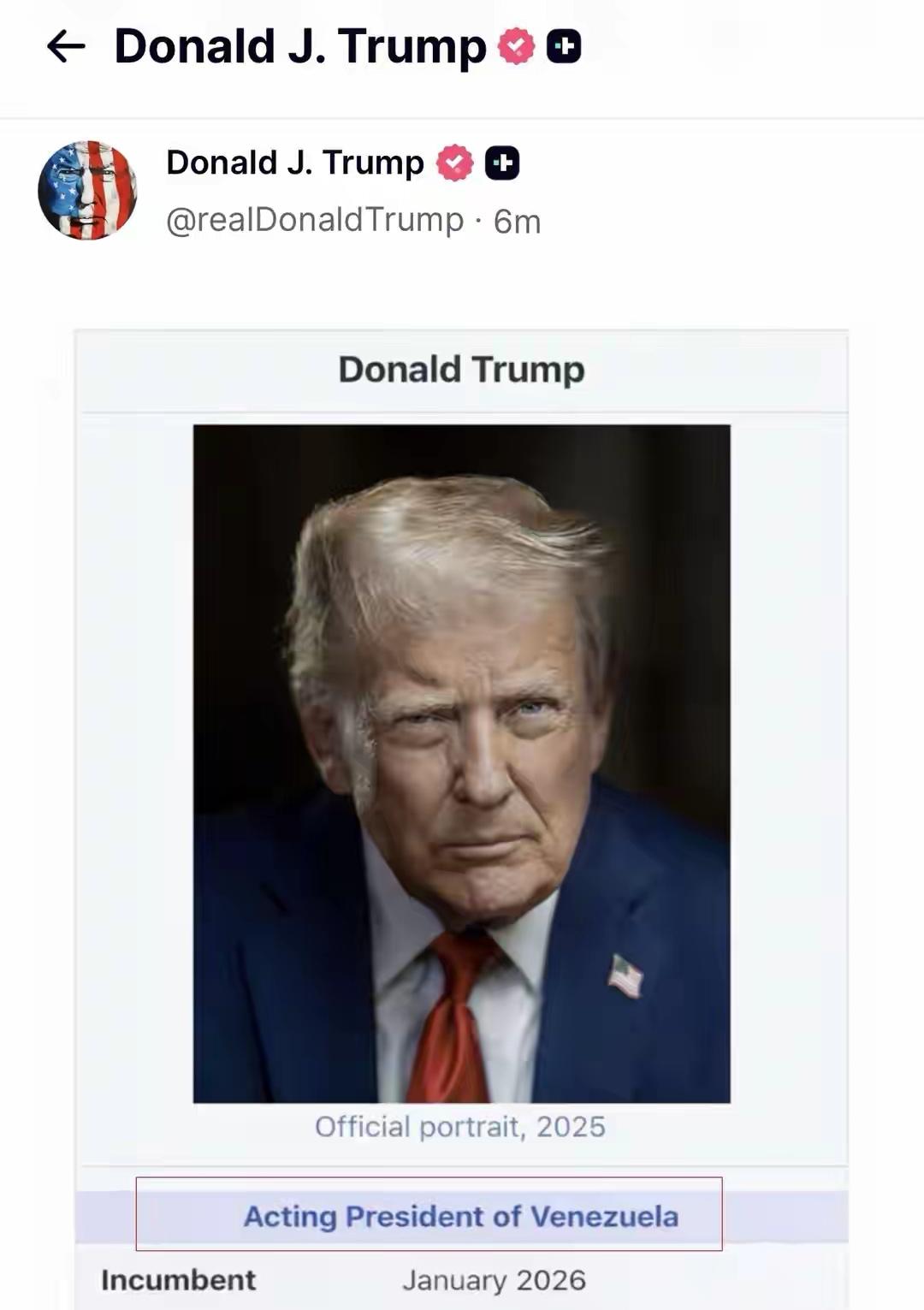 委内瑞拉两个总统了?委内瑞拉副总统罗德里格斯已担任该国代总统,并于1月5日正式宣誓就职。特朗普1月4日在接受媒体采访时曾说,如果罗德里格斯“不正确行事”,她可能将付出比委内瑞拉总统马杜罗“更沉重的代价”。