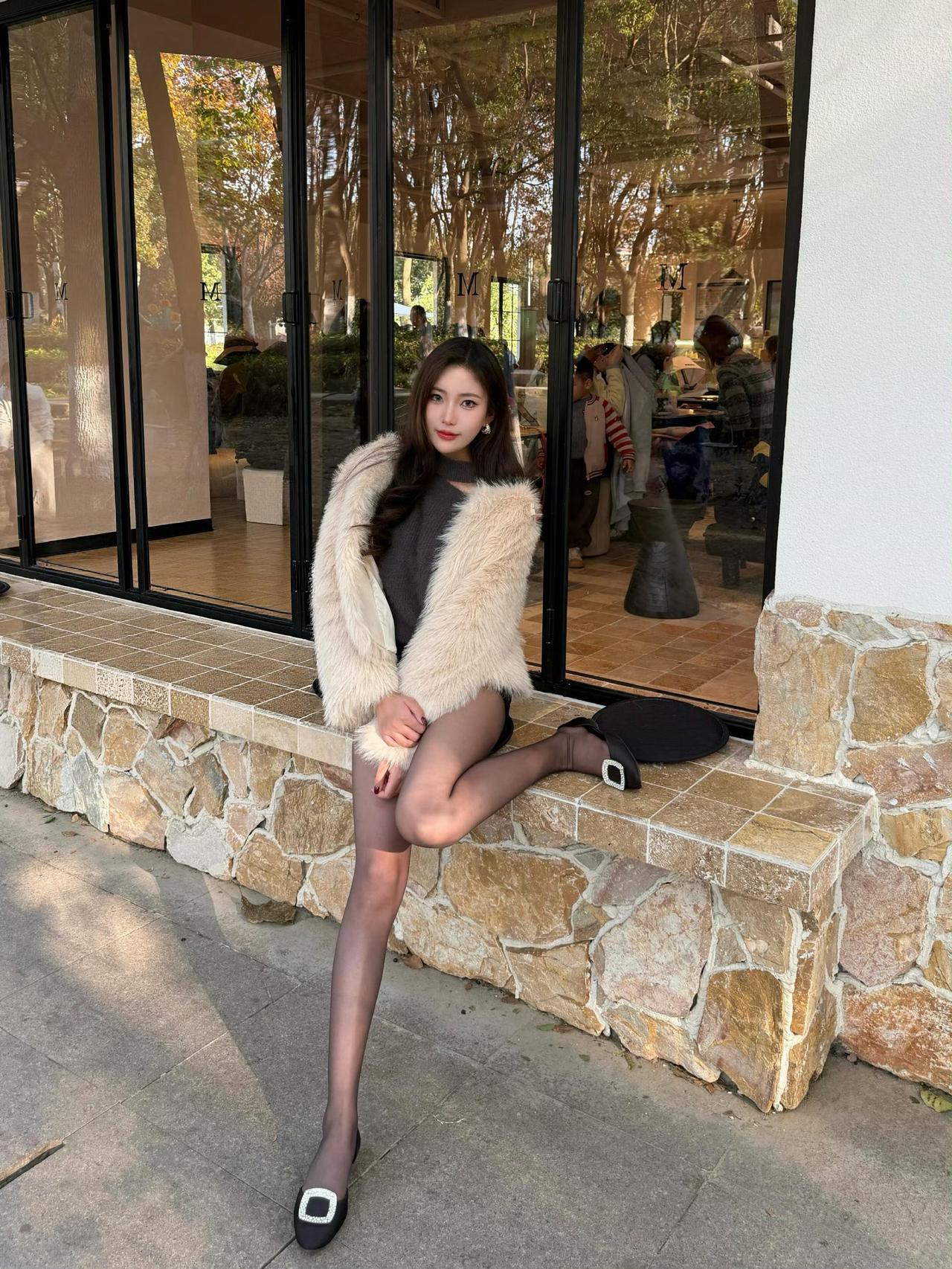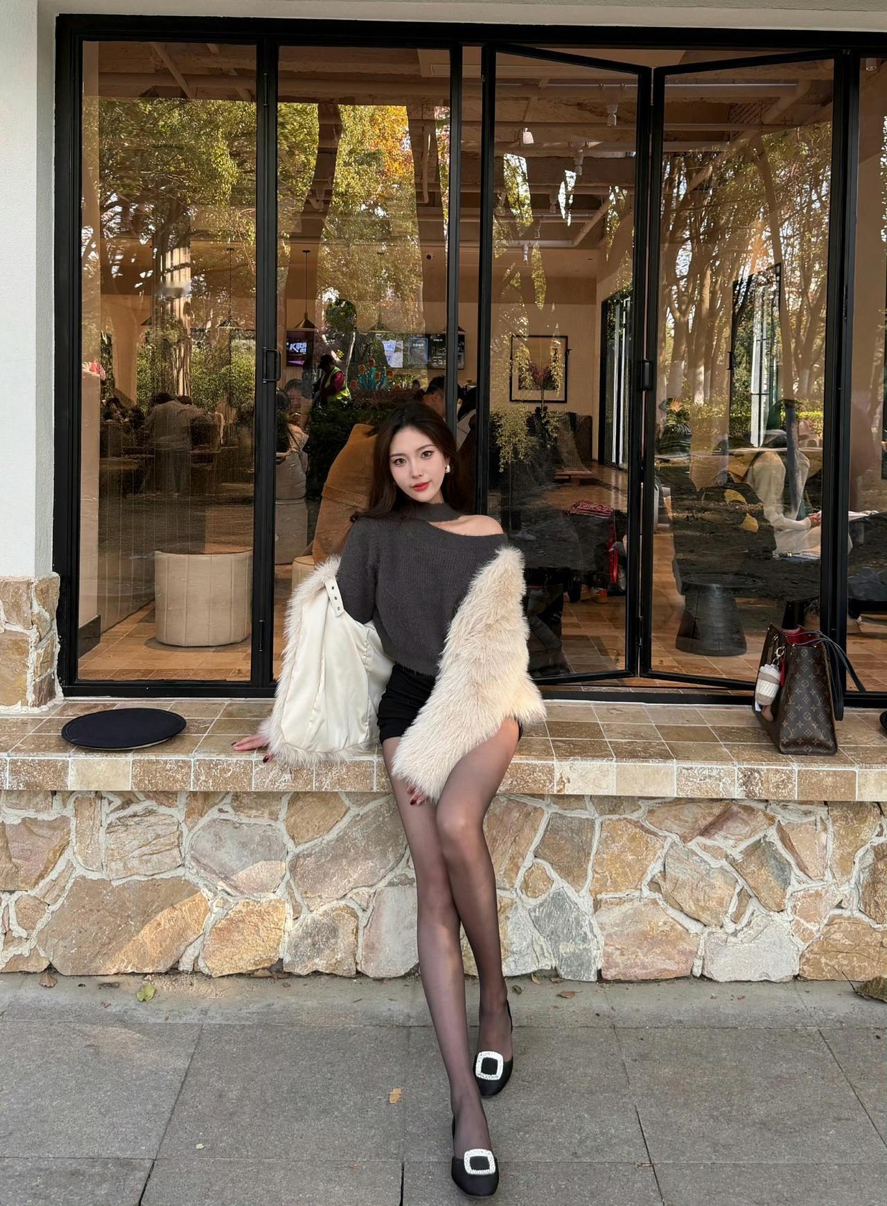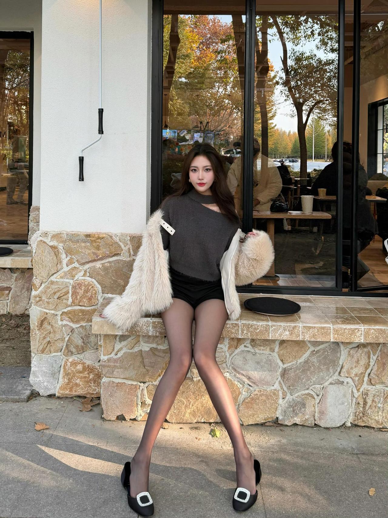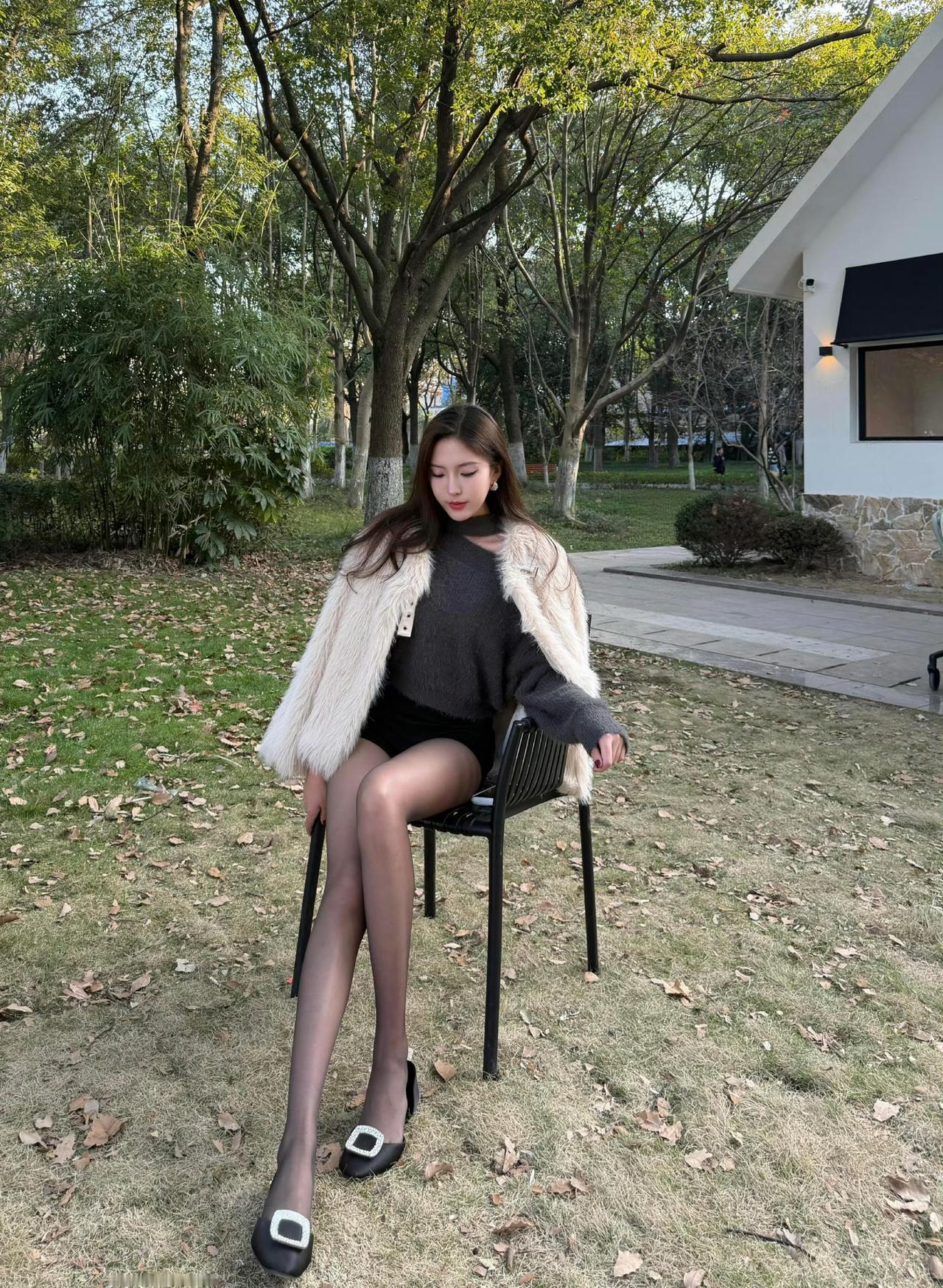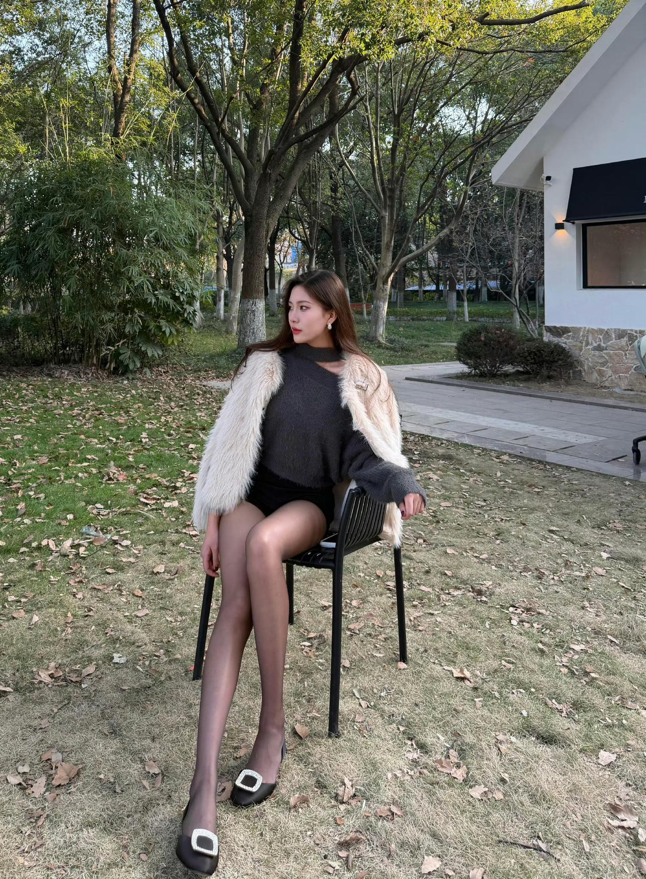 这套穿搭是酷飒贵气的灰调冬日轻熟风,把温暖毛绒质感和个性细节融合得很有氛围。浅白毛绒外套自带冬日贵气,搭在肩头显松弛随性;内搭灰色挖空毛衣+黑色短裤,挖空设计添个性、短裤注入轻熟感。 搭配钻扣高跟鞋强化轻奢气场,修饰腿部线条;简约无过多配饰的搭配,让造型重点集中在材质与版型的碰撞上。充分展现穿着者酷飒贵气的轻熟魅力。秋冬毛绒绒穿搭 毛绒外套
