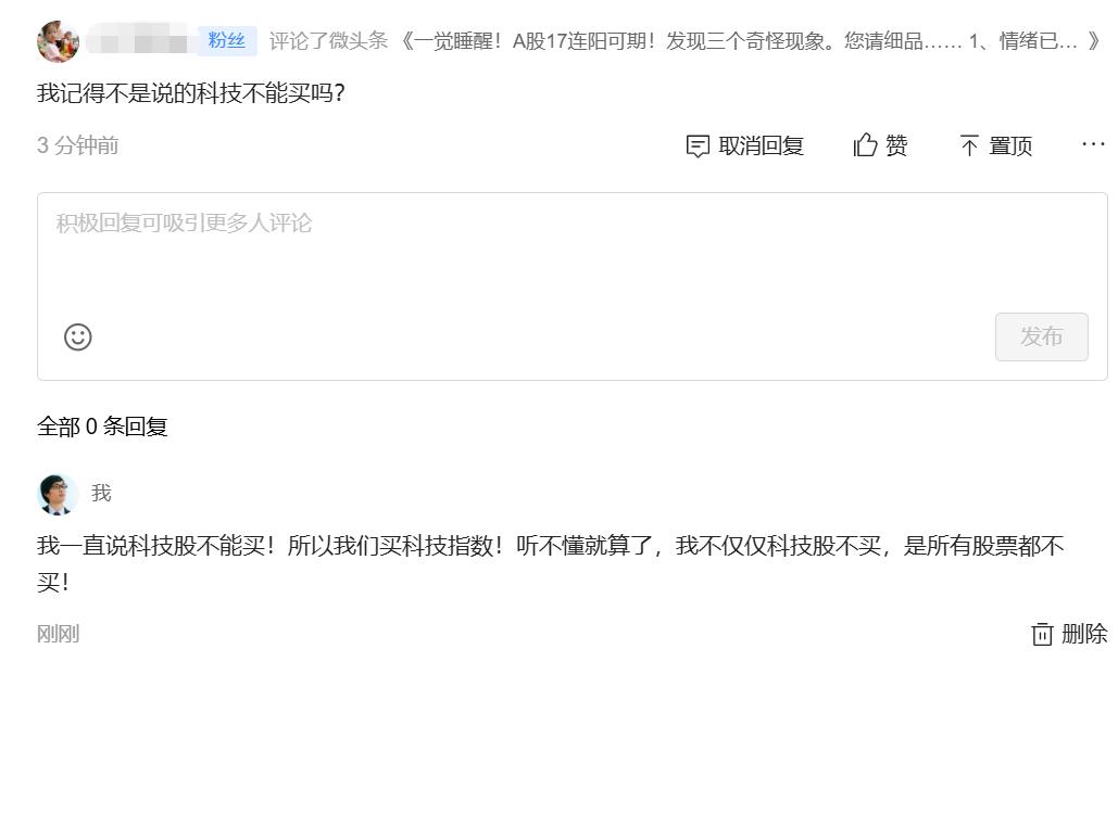 17连阳!持有ETF享受本轮牛市完全没有问题,今日好多科技行业指数涨停板了! 1、有时候很莫名其妙,一直说我是指数基金博主! 不买股票是触犯天条,还是触犯大家的家法了!一天天怼这个话题有意义吗?大牛市,你应该关心自己是持有什么筹码享受行情,而不是天天与别人争论是买基金好还是买股票好。 我觉得买基金好,因为我买股票不敢重仓,也不敢炒股。小凡从码字到现在都是在分享指数投资的策略,不知道为什么总是吸引股民当粉丝,炒股票真的与指数相关吗?我也不知道,反正我玩指数没亏过,炒股票没赚过…… 2、不买科技股,不是不买科技资产。 不要偷换概念,小凡从2023年开始就是囤的科技指数,纳指,恒科,双创,北证,恒医等等都是科技指数吧。如果你不认同它们的成分股是科技,我无话可说,因为大家聊的话题连基础都不成立。 小凡喜欢的是科技指数,目前仓位里面也是近半的科技指数,过去3个月回调又重新捡回来的。有问题吗?我不买科技股票,这句话说了很多年,与我买科技指数冲突吗? 3、不希望有股民当粉丝,就是不喜欢看到这种评论。 大家只需要知道,小凡炒股没赚过,那就行了!你跟着一个炒股从来没赚到过钱的人看他的观点去炒股,就像抄学渣的作业一样。 也对,以前读书的时候就有这样,我同桌的英语特别偏科,那时候月考是按照总分排名安排考场。一场英语考试下来,他快笑晕了,说旁边的人从头到尾抄他的,估计2个都是英语偏科…… 最后总结 我不炒股,如果你想参照我的指数分析观点去炒股,我提前祝您血本无归!我是指数基金博主,下方专栏写的不够清楚吗?