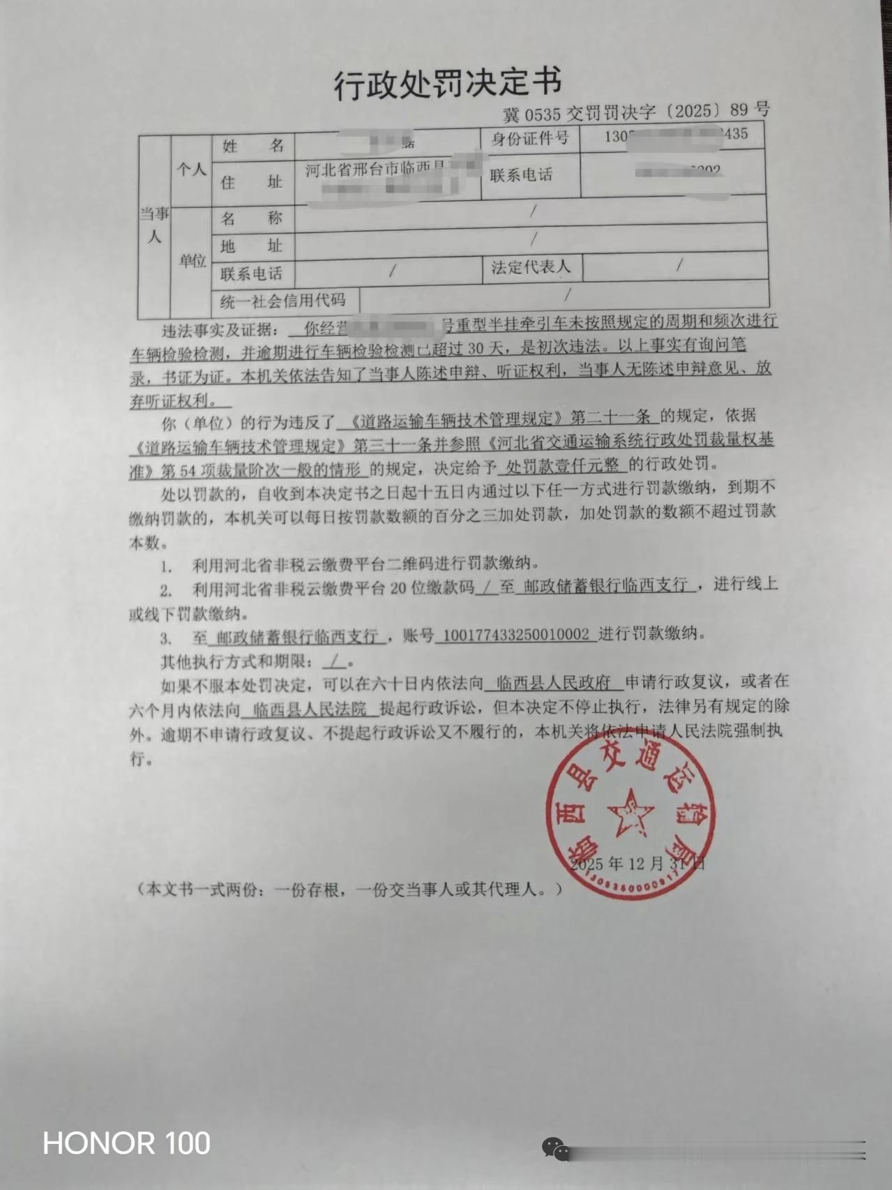 临西两家单位被行政处罚!邢台 临西县交通运输局