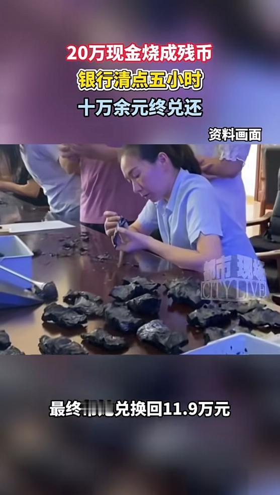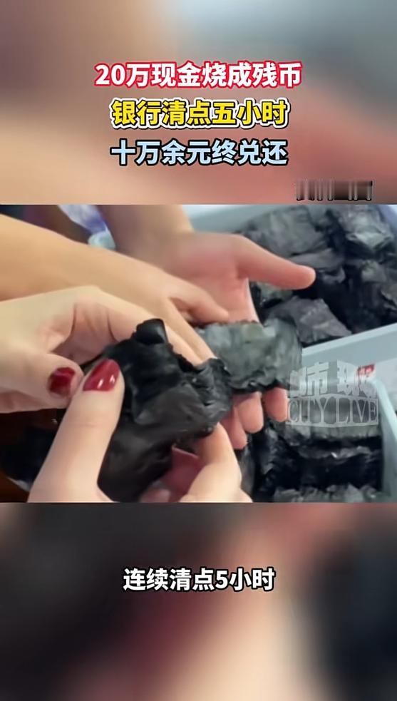 这下损失大了!云南保山,一女子老家意外起火,可比起房子的损失,屋子里的东西更加值钱,她将20万的现金放在柜子里储存,结果一把火下来,有些钱直接烧成了“黑炭”,去银行兑换,足足清点了5个小时,挽回了11.9万元 这笔钱不是什么横财,是赵女士一家人省吃俭用一点点攒出来的。平时舍不得花,觉得放在老家柜子里最踏实,看得见摸得着,心里也有安全感。火起得太突然,家人第一反应不是顾自己,而是冲回屋里抢钱 幸运的是,装钱的袋子找了回来,但不幸的是,打开一看,许多钞票已经被烟火熏得黢黑,粘在一块,有些甚至碳化了,手指一碰就碎 很多人遇到这种情况,第一反应就是认栽。赵女士没这么想,她抱着最后一点希望去了银行。银行工作人花了整整5个小时,一张一张清点、分拣、核验,能救回来的尽量救。最终换回11.9万元,不是全部,却是实实在在的挽回 说起来,银行残币兑换制度的作用。很多人可能不知道,即使纸币严重损毁,只要符合中国人民银行《残缺污损人民币兑换办法》的规定,银行依然可以按标准进行兑换。这是其法定义务。赵女士能挽回近十二万,正是基于这套制度 钱这东西,辛苦挣来不容易,存得对不对同样重要。把现金长期放在家里,看着安心,但其实也有风险,只能说,能救回一半,已经是这场意外里最值得庆幸的部分
