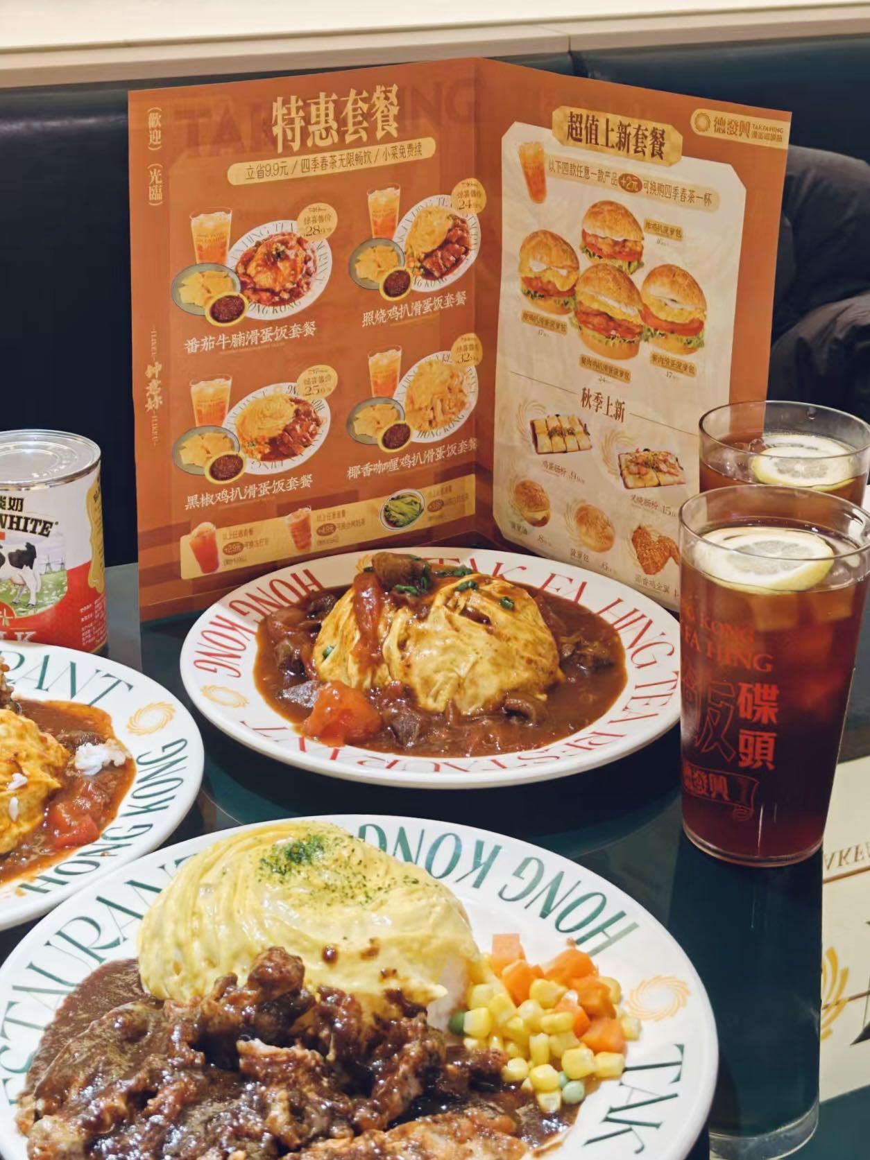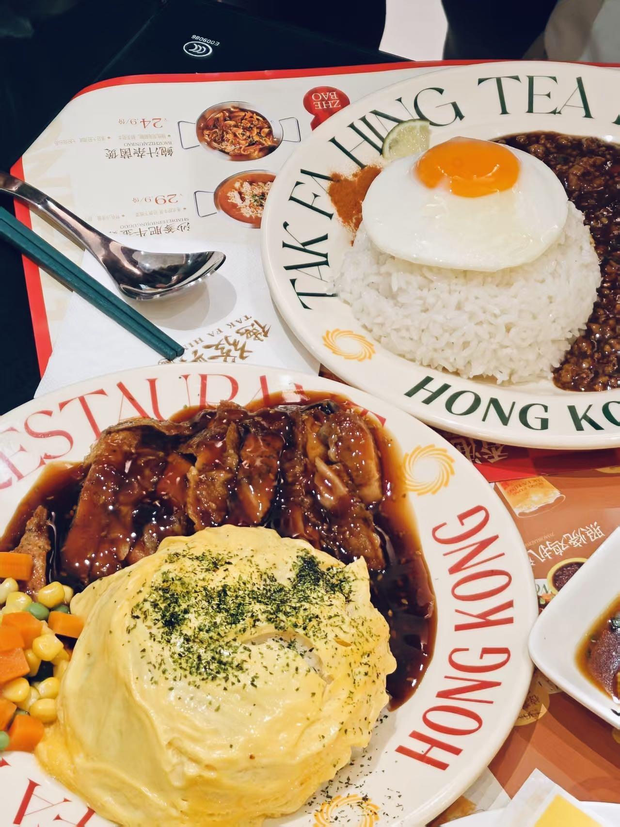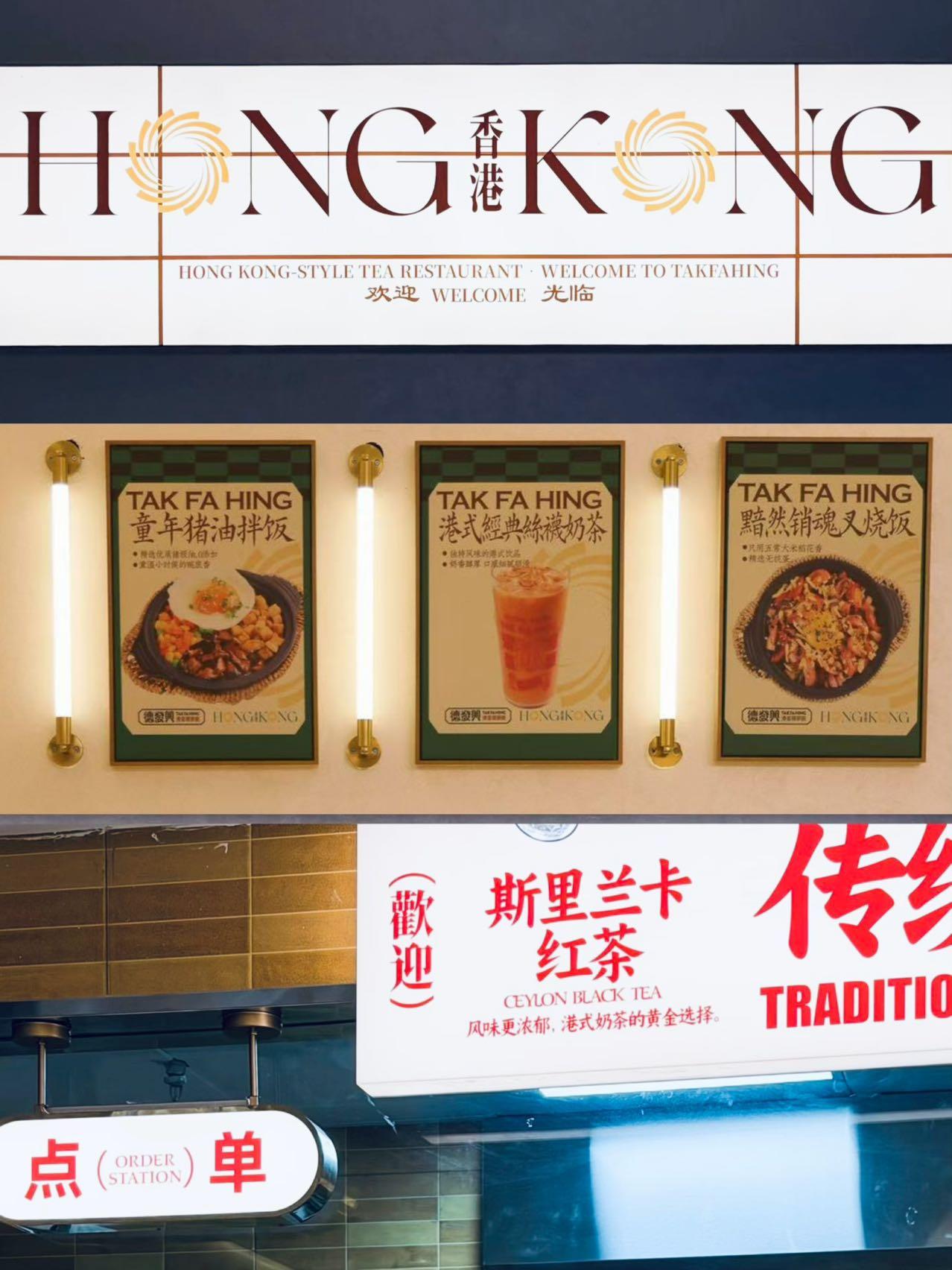 如何充实又美味的解决1️⃣顿午餐?德发兴以「滑蛋蝶头饭」带来轻量化港式茶餐厅。 红白色混搭的「德发兴」的灯牌、颇有记忆点的“HONG KONG”标识,自带港岛Style。泛光型照明设计,提供亲切友好的用餐氛围[啤酒] 从裹着五常大米的滑蛋系列碟头饭🍚、皮薄馅足的招牌肠粉,到酸甜解腻的冻柠茶、斯里兰卡红茶冲泡的港式奶茶🧋.....冷热皆宜。 同时,友好的价格与菜品设计来自对市场喜好的调研,无论工作餐、1️⃣人食、加班前的小聚,都能轻松驾驭无负担,适配不同客群~