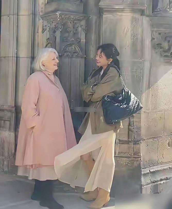 马思纯和外国老太太的图片全网疯传。到底是抓拍还是摆拍。法国人的优雅时髦是与生俱来的,是藏在骨子里的,是伴随一生的。 其实就是马思纯在法国街头的一组互动图,她穿搭得挺有范儿,结果意外被一位满头银发的当地老太太拉住一顿夸,这画面看着确实挺有冲击力。 很多人在纠结这到底是不是提前设计好的脚本,但我倒觉得,这种跨国界的审美碰撞,其实没必要分得那么清。 哪怕真的是工作拍摄,能让这种气质出众的老太太主动停下脚步去欣赏,也说明马思纯最近的状态确实找回来了,整个人透着一种久违的松弛。 这种状态和法国街头的氛围出奇地合拍,尤其是那位老太太,虽然满头银发却一点不显颓态,那种欣赏年轻女孩的眼神特别真诚。 我更在意的是这种文化碰撞的小细节,不同背景的人对“美”的认知,在这一刻算是彻底对上信号了。 不过看两人互动的神态,我挺好奇她们当时到底是用哪种语言聊的? 到底是用的英文沟通,还是老太太在那讲法语,马思纯靠表情和手势在接招呢? 这种异国他乡的偶遇,如果能完全打破语言障碍聊到一起,那画面感可就更有意思了。