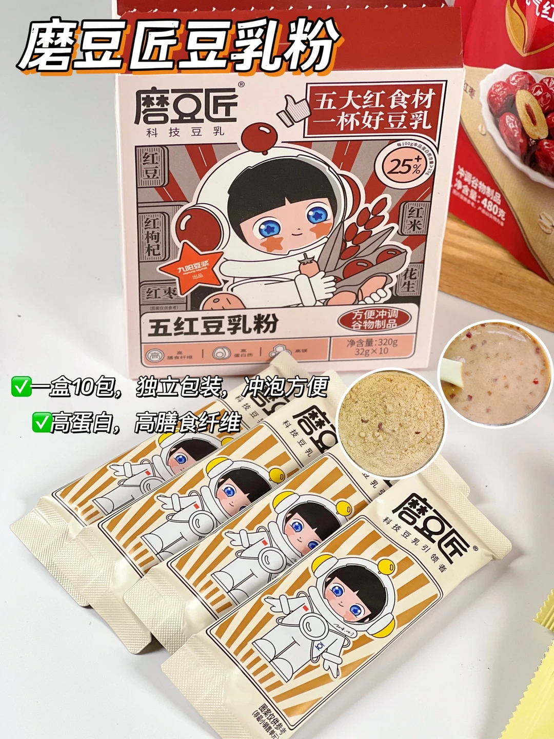 用的是磨豆匠五红豆乳粉:红豆,红枣,红米,红枸杞,红花生,都是养生的好玩意,没有科技与狠活,口感很细腻,冲泡起来超好喝!气血不足,精神状态差的养生女孩可以多喝哦!