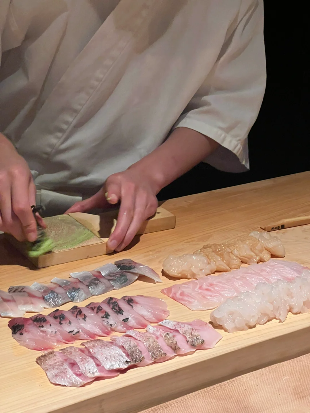 SUSHI KAKURE 鮨隠位于上海黄浦区长河国际公寓六楼 是日料店笑鱼搬迁后的新店 作为十几年的老店能在竞争激烈的上海存活至今 说明品质和价格还是可圈可点的 - 装修在千篇一律的日式原木简约风中也别出心裁 前厅放置了幽暗的水台 和天井相得益彰 板前座位不多 灯光也比较昏暗 比较有氛围感 - 食物出品方面 【番茄冷面】无色透明的番茄汁蛮开胃的 【松茸】【鲍鱼】都不错 【小肌】【鰤鱼】也处理的不错,不会觉得腥 虽然食物中规中矩但也没有什么踩雷的 对比其他上海物价横飞的日料Omakase性价比蛮高的 - 🍣店名:SUSHI KAKURE 鮨隠 ⏰时间:12:00-14:00,18:00-22:00 💰价格:1280 元/人 📍地点:上海黄浦区寿宁路98号长河国际公寓六楼(近西藏南路) - 🌟关🐷我~带你周游世界🤠 各地攻略在主页合集 已按地区分好类便于搜索哟~ -