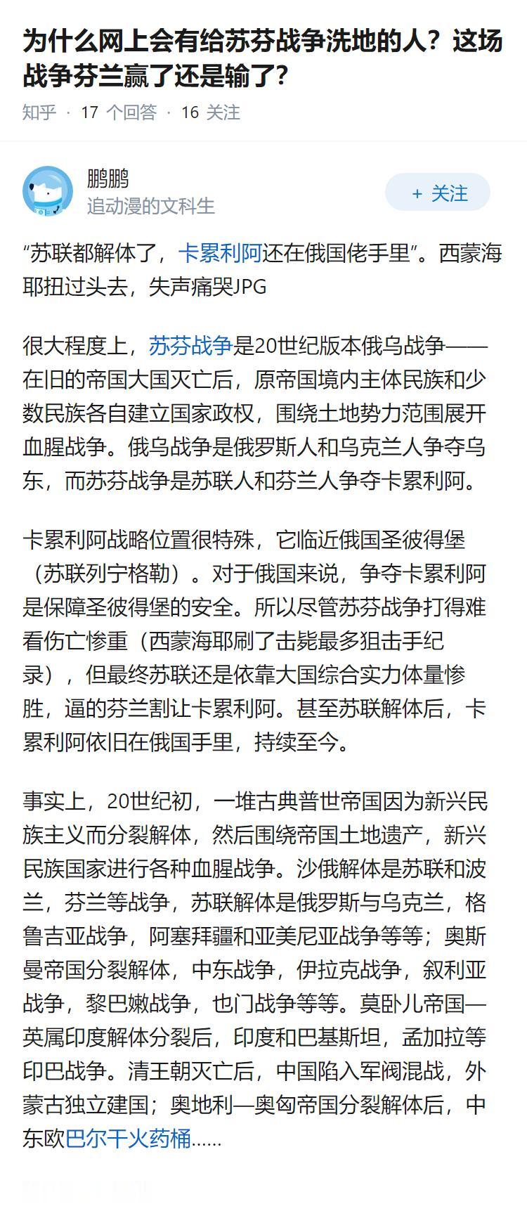 为什么网上会有给苏芬战争洗地的人?这场战争芬兰赢了还是输了?