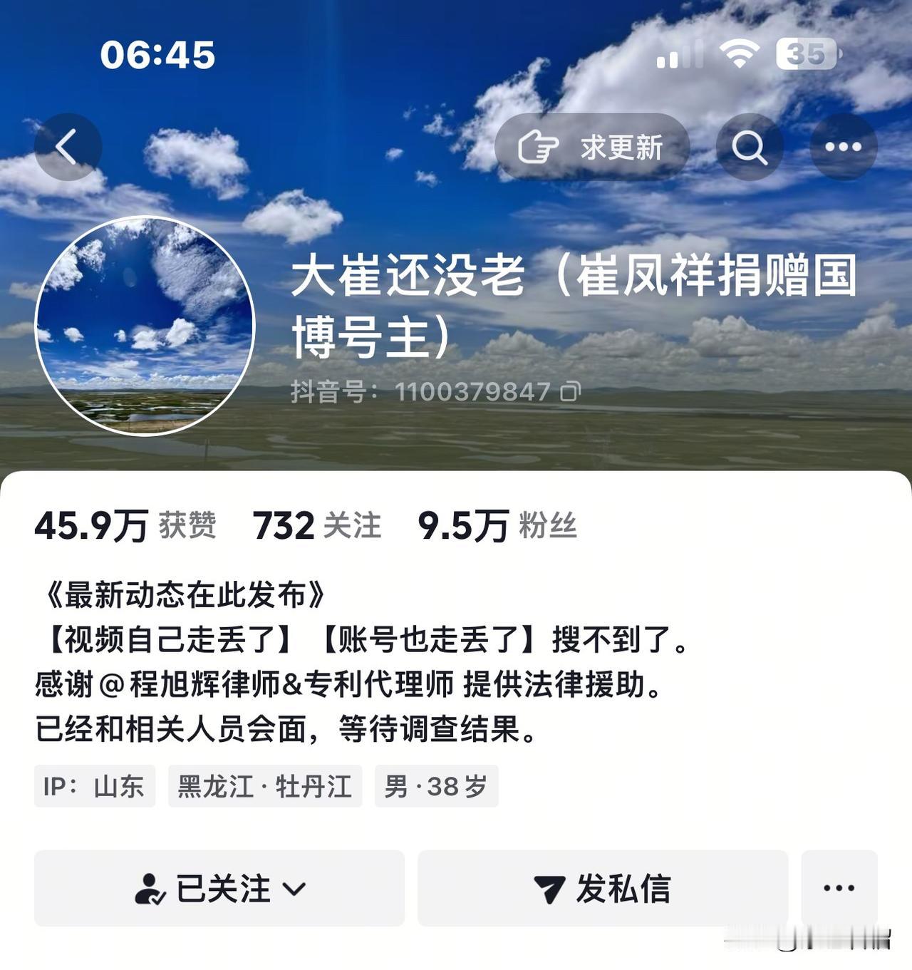 国博文物丢失案最新消息: 崔凤祥老人的文物丢失案总算有了结果,网友们悬着的心也能放下大半了。 1月12日晚,老人与律师程旭辉、热心网友赵说不误联合发布了最新视频。 从视频文字可知,捐赠事件终于有了较为完美的结果,相关证明材料已交给调查组,国博也正在对此次事件展开调查。 让我们一起静心等待调查结果吧! (内容来自:大崔还没老)