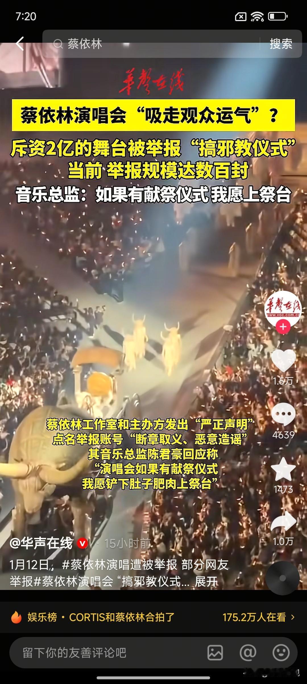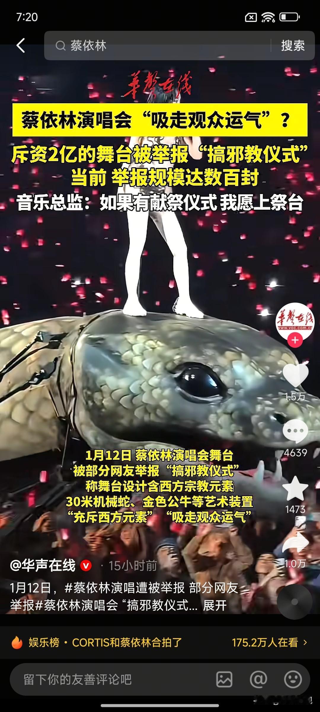 太恐怖了! 有人说蔡依林演唱会的场景造型是献祭了邪教仪式,是专门吸人财运的。看了整个演唱会的造型确实给人一种阴森恐怖的感觉。不知道看过的观众的财运咋样了?蔡依林暗黑造型 蔡依林带状疱疹 演唱会玄学