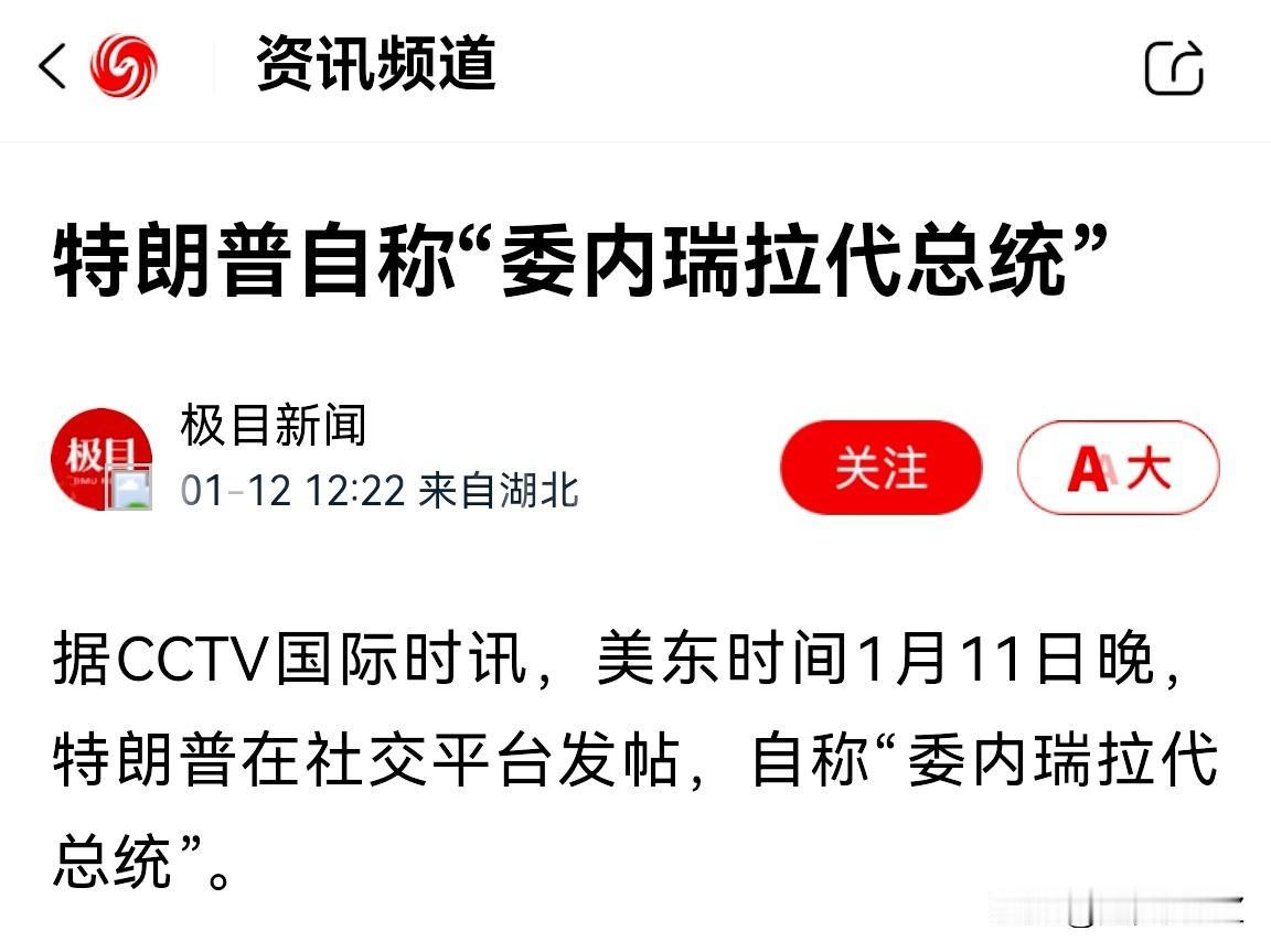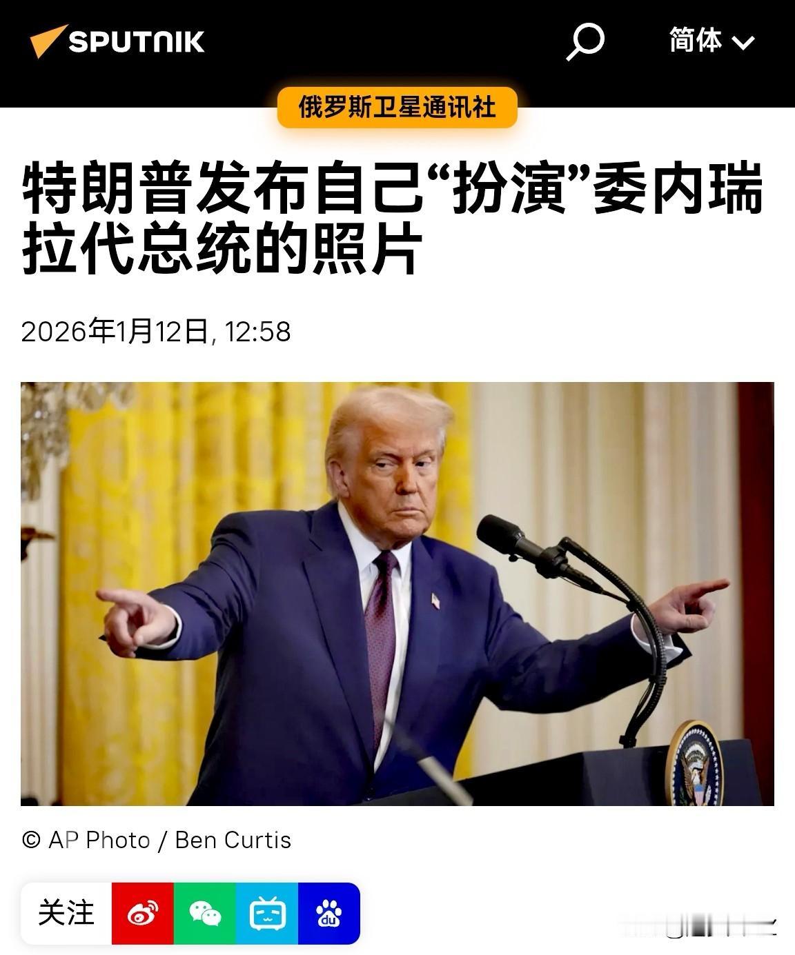 俄罗斯卫星通讯社:美国总统唐纳德·特朗普在“真相社交”网站发布,特朗普于2026年1月“就任”该拉美共和国(委内瑞拉)的代理总统。 说两句:真有好戏看了!特朗普胃口就是大,还要当委内瑞拉国总统,可是,1月5日,委内瑞拉副总统德尔西·罗德里格斯宣誓就任委内瑞拉代总统。 谁是委内瑞拉真正的代总统,委内瑞拉前总统马杜罗在美国受审,难道是马杜罗在美国移交总统职位给特朗普,这是要在美国搞一个移交仪式吗? 这可咋整啊!特朗普真是入戏太深了,总统梦深深融入他的血液中,他梦想当多少国家总统,只有特朗普自己知道,好戏开场了! 追梦人HZ 委内瑞拉领导人