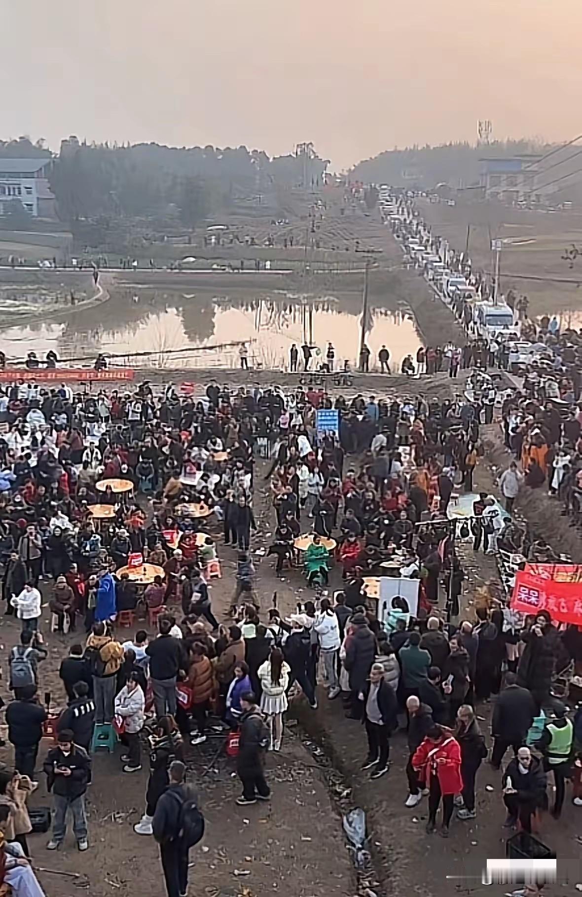这反应速度,简直让人“头皮发麻”。 前脚刚爆出300桌的热度,后脚文旅局直接接管比赛: 统筹18个点位,每天100桌,一直摆到正月十五! 事情得从重庆合川姑娘“呆呆”说起,1月9日她发视频求助,想找2个网友帮忙给父母按年猪,还调侃希望门口停车比结婚时多。没成想48小时点赞破18万,5个粉丝群全满,上千人从各地赶过来。 呆呆家原本只准备了2头猪,哪扛得住数千人的阵仗。好在热心网友和企业补了3头,文旅局也连夜调配2头本地黑猪,5头猪才勉强撑起这场300桌的流水席,烟火气里全是陌生人的善意。 合川文旅是真没闲着,1月11日凌晨两点就派小分队到场,不是来“管事儿”的,是帮忙生火、维持秩序。还带着专业设备直播,一天发近10条视频,把乡村盛宴推上热搜,账号流量比往年一年都多。 现场场面热闹得超出想象,汽车从村口排了七公里,交警全员上岗疏导,还安排免费接驳车送游客。志愿者、村干部、公安齐上阵,连移动厕所都连夜拉来,把“乱局”打理得明明白白。 所谓“接管比赛”其实是误传,文旅局更像“资源整合者”。呆呆家小坝子承接不了太多人,就筛选18家合作餐饮点位分流,大多50元一人,既不让主家为难,也让游客能吃上正宗刨猪汤。 这场狂欢里藏着最质朴的快乐,网友们分工按猪、烧水、刮毛,主厨从清晨忙到下午,浑身是油烟味却没怨言。晚上的篝火晚会、打铁花、舞龙表演,比过年还热闹,直播间峰值超10万人在线。 呆呆是真被这阵仗吓着了,像个“犯错”的小孩站在一旁,却不忘细心交代路程,还提前跟警方报备。短短几天她涨粉破百万,视频火到澳大利亚,让合川桃片、钓鱼城跟着出了名。 文旅局没搞商业赞助,全程盯着直播保纯粹,还现场派发钓鱼城门票和合川特产。不是硬蹭流量,是顺着网友的热情,把一场民间活动变成了文旅推广,这份真诚让人没法不点赞。 后续活动不只是摆流水席,还规划了刨汤民俗文化季,有按猪体验、厨艺大赛、年猪祭祀。还串起钓鱼城、涞滩古镇等景点,推出新春优惠套餐,想让“偶然热点”变成“必然亮点”。 有人说这是“泼天的流量”,但接住流量靠的不是运气。超市按进货价卖方便面,村民拿出五百斤泡菜分享,屠户排班杀猪,所有人都在用心维护这份难得的烟火气,这才是最动人的地方。 文旅局的聪明之处,在于没破坏活动的原生态。不摆官架子,不搞强制要求,而是补位服务、顺势引导,既守住了安全底线,又留住了人情味,给其他地方做了个好榜样。 各位读者你们怎么看?欢迎在评论区讨论。