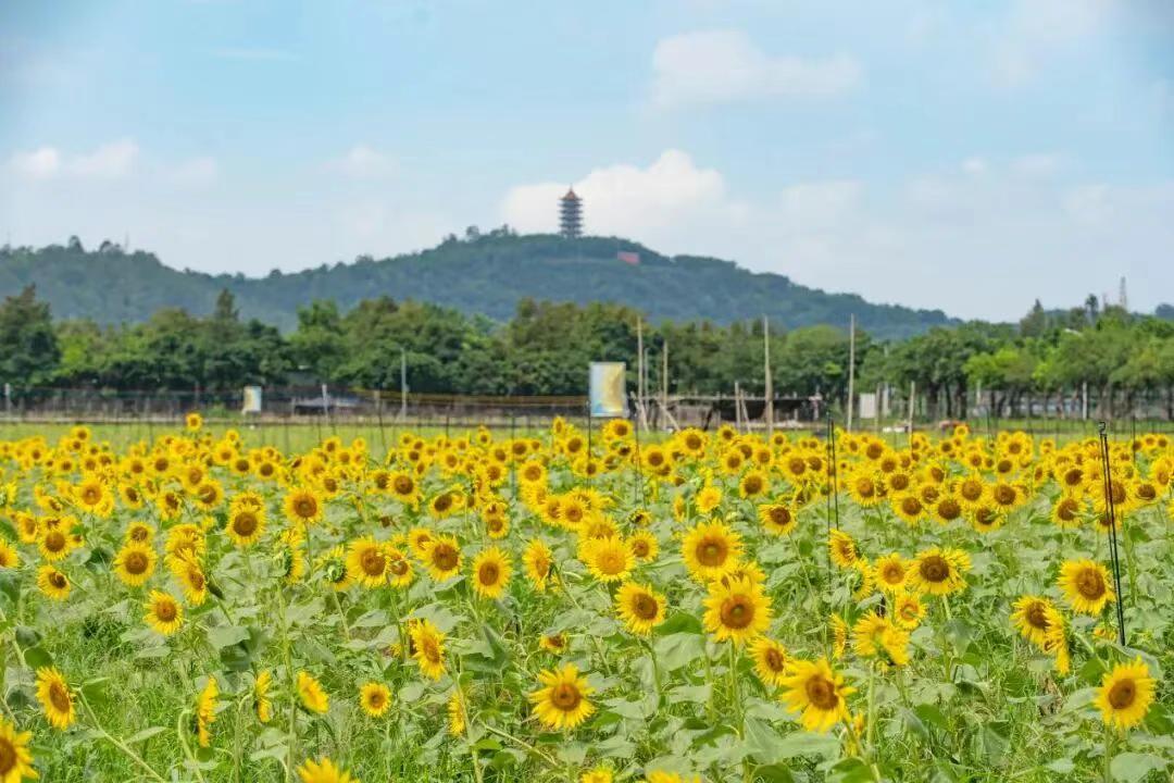 【南沙又来花海!这次是大岗镇东隆村】南沙继续有花海上新!大岗镇东隆村向日葵已绚烂绽放,位置离南沙市区稍远,不过景色比东涌官坦更开阔,而且可以和十八罗汉塔同框哦!