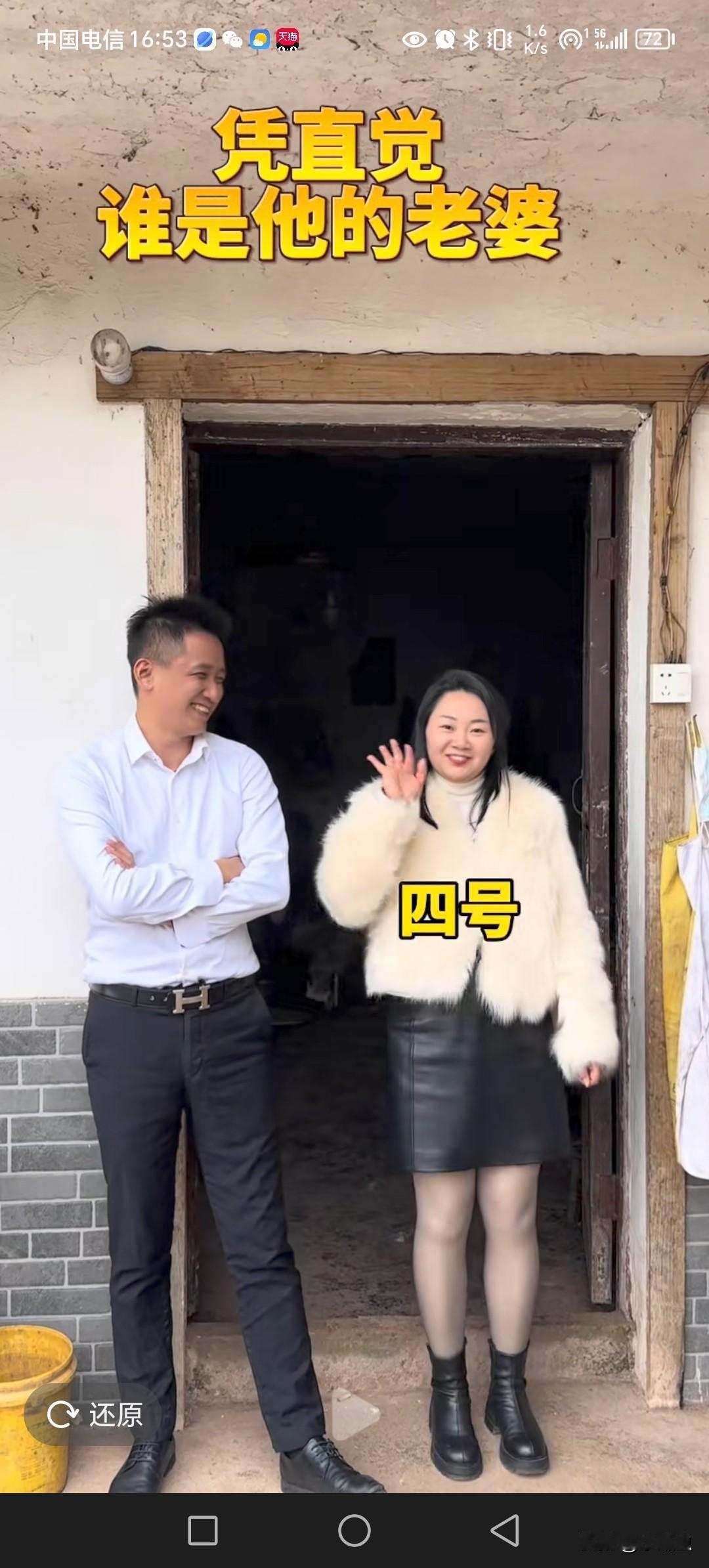 大家猜猜,这四位美女谁是他老婆。 从面相一眼能看出来吗? 我看到四个都不是他老婆。 你们猜得出来吗?