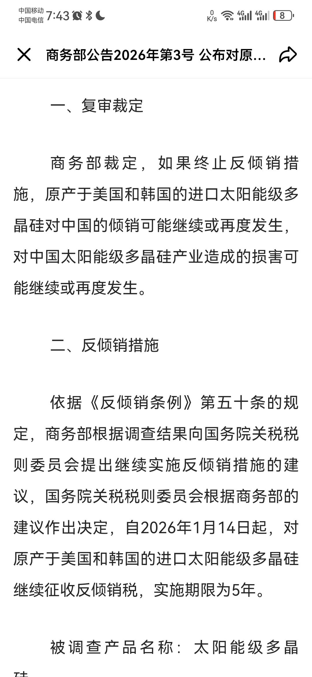 中国这一次的反制迅速得惊人,特朗普注定又要尴尬一回了!1月12日,特朗普宣布,任何国家只要和伊朗贸易,一律加征25%关税,而且,还宣称这个决定将立即生效,最终且不可更改。 特朗普这一招,可以说是为了针对伊朗,但是要知道,伊朗最大的贸易伙伴不是别人,而是我们中国,特朗普如果真要对跟伊朗做生意的国家加征关税,那么就会加征到我们头上,之前打了贸易战,好不容易息战,现在又来? 于是,这一次我们反制迅速得惊人,才不过一天,1月13日,商务部就发布了一个重磅公告,便是将对美国、韩国的太阳能级多晶硅继续征收反倾销税,最高税率直接高达113.8%。 特朗普前一秒出言威胁,我们下一刻立刻反制,毫不犹豫,毫无畏惧,你要战,那便战,经过与特朗普的多次交锋,我们早就已经知道特朗普的风格,如果对手显露出哪怕一丝服软妥协的意思,特朗普立刻就会像是闻到了腐肉味道的秃鹫那样立刻扑上去,因此,这一次特朗普既然敢威胁,那么我们立刻就要以雷霆般的姿态进行反制。 而现在,毫无疑问,特朗普已经陷入了尴尬中。特朗普的推文,态度异常强势,其中专门提到,他这个决定“最终且不可更改”,会“立刻生效”,可直到现在,过去了好久,美国白宫、国务院,都没有发布任何配套文件,发了推特,后面没有政府机构的配套文件跟上,自然执行不下去,这样反常的现象足以说明此刻特朗普的挣扎与犹豫。 毕竟,要是真的信守承诺,那么岂不是又要跟中国来一场贸易冲突?而在之前的贸易战中,特朗普已经吃了大亏,早就不敢挑衅我们了!所以,这一次特朗普注定是又要尴尬一回了!如果没有我们,特朗普这个制裁伊朗的决定,说不定还真的能够得到实行,毕竟其他国家并没有与美国抗衡的力量,可偏偏有一个我们在,所以特朗普唯有徒呼奈何!