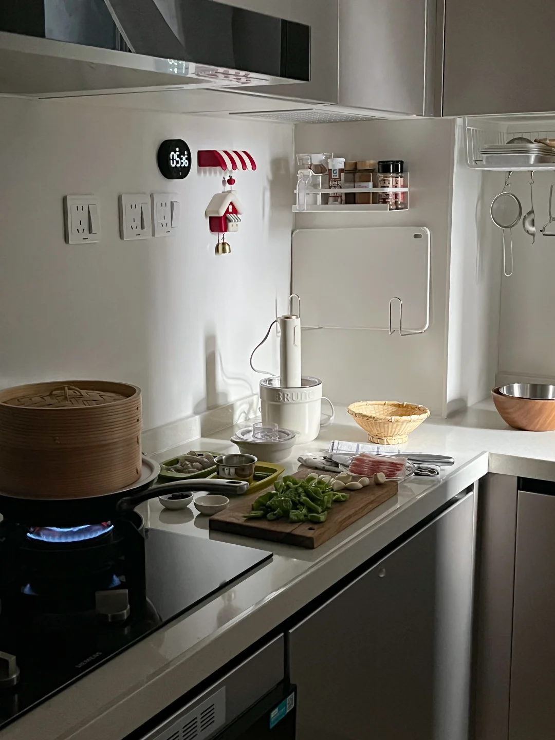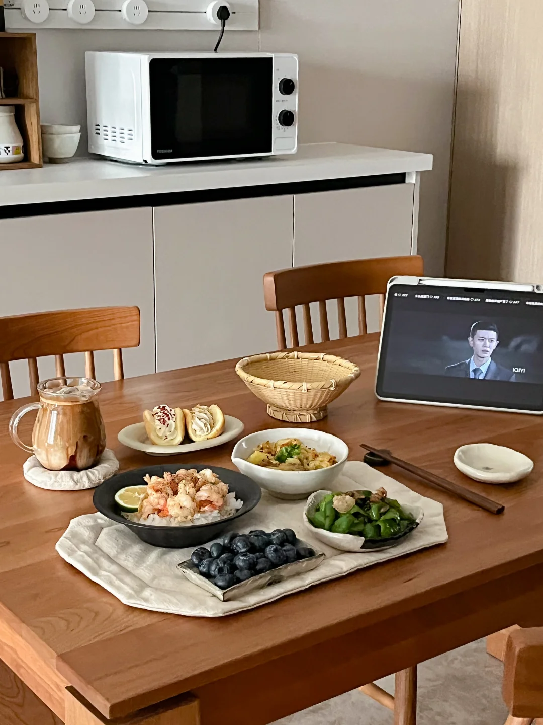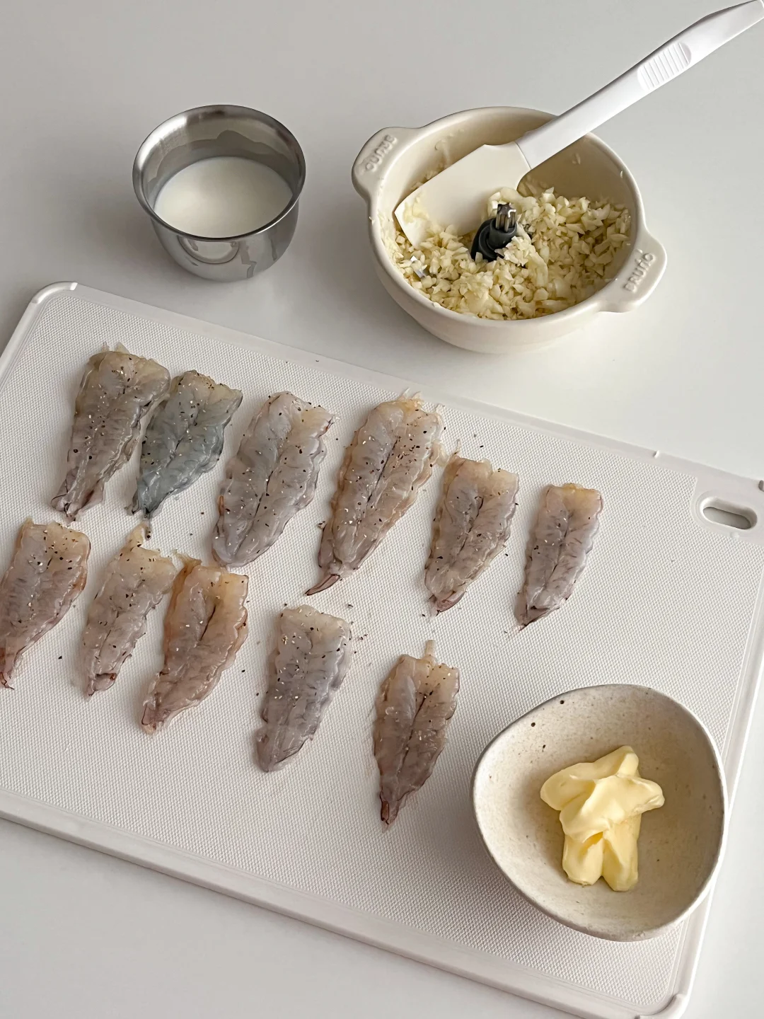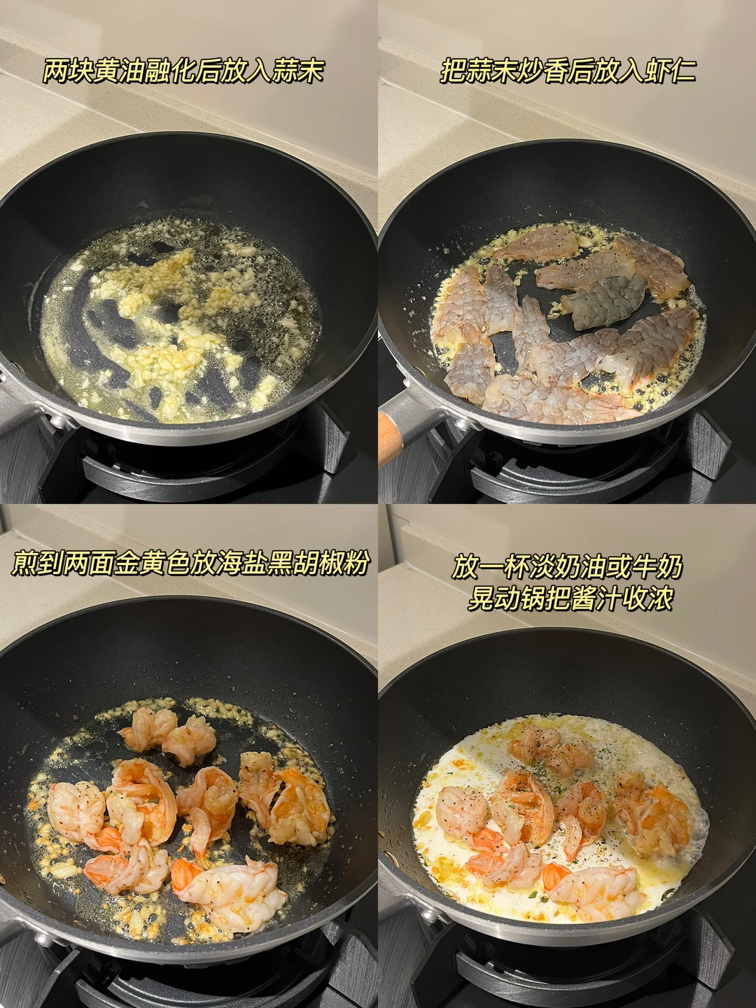 2026新年第一餐 依然是我爱的奶油虾仁 虾仁提前对半开背不切断 撒点海盐和胡椒粒更入味 大虾卷成饱满的弧度 刚好都变胖嘟嘟的 奶油虾仁饭🍤 椒盐小土豆🥔 豆豉青椒小炒肉🫑 咸奶油抱抱卷🧁 巧克力酱拿铁☕️