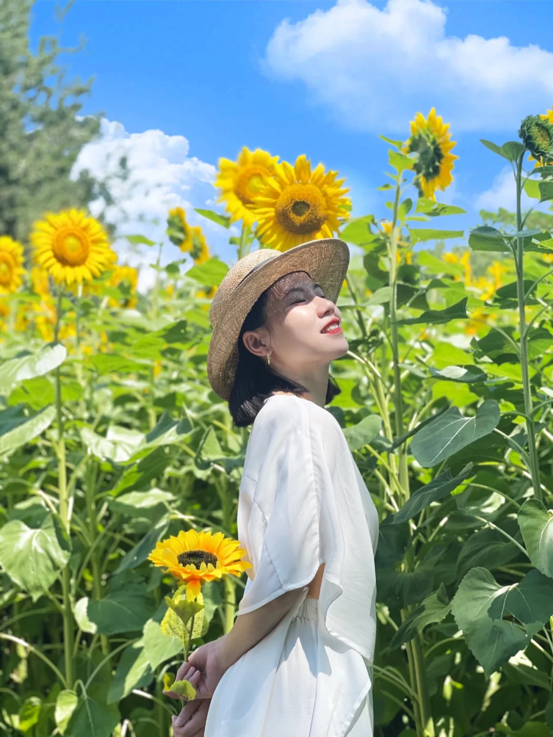 我一直很喜欢向日葵,这是我第三年来看了,今年又带上月亮和几个小伙伴一起来,大片花海看着真的很像置身于油画里,而且奥森的一年四季都是各种美景,赶紧去拍吧!我们手里的向日葵是自己买来的道具假花[暗中观察R] 📍地址:北京市奥林匹克公园北园西门 🚗:打车或者自己开车最合适 拍照📷tips: 1、拍摄时间最好为7.8点早上,下午为四五点左右,这样阳光没那么强烈,也没那么热 2、向日葵是一个圆形,中间有树可以遮挡,所以拍照会舒服一些,但是也是人很多!记得不要摘菜,踩花!! 3、带小盆友一定要注意防晒,带好吃的,驱蚊止痒的东西 4、穿着最好是纯色,不要太花