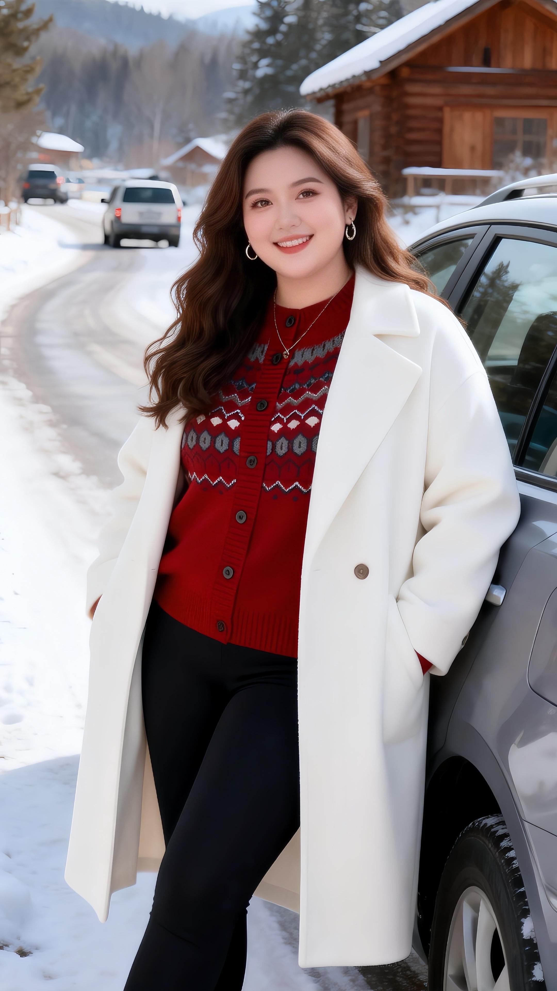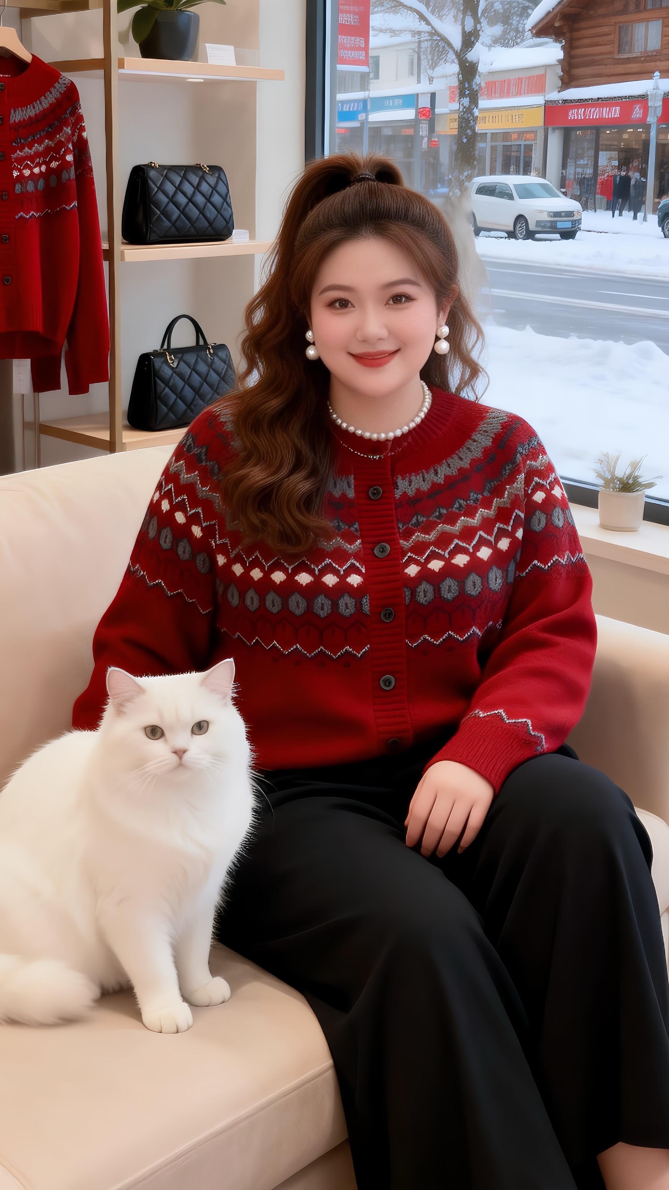 大码穿搭新中式穿搭红色针织衫胖妹妹红色系新年穿搭来咯让人眼前一亮的跨年约会穿搭