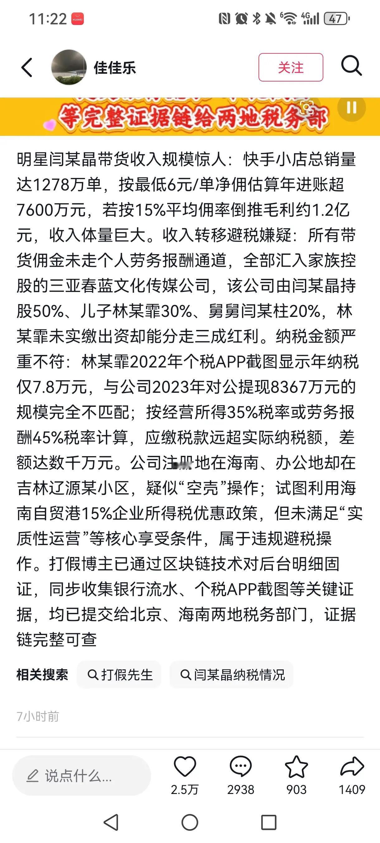 闫美人一家涉嫌偷税漏税!? 若举报属实,打假博主真乃国家功臣、酸黄瓜们的挚友,为国家提供了一个财政增收的重要线索。 见该博文中数据详细、逻辑清晰、推论合理、信心满满,但不知属实的可能性有几何。 酸黄瓜们静待国家税务机关公正作为,核查此事,并将其清白与否昭告天下!
