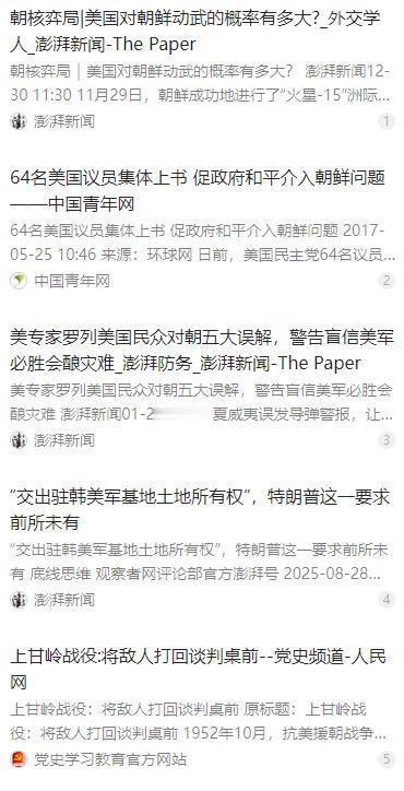 老美为何就是不打朝鲜,说实话,不是老美不想打,而是真的不敢呀,一旦开打后果实在是太严重了。   麻烦看官老爷们右上角点击一下“关注”,方便您进行讨论和分享,感谢您的支持!   这些年国际上总有人猜,美国军力全球顶尖,为啥偏偏对朝鲜迟迟不敢动武?其实答案很直白,不是美国没想法,而是真的没胆量。从历史教训到现实困境,从国内民意到盟友态度,层层枷锁套着,真要开打,后果根本不是美国能扛住的。   上世纪五十年代的朝鲜战争,就是美国挥之不去的 “噩梦”。当时美国领着十六国联军,装备着最先进的武器,一路打到鸭绿江边,气焰嚣张到极点,觉得拿下朝鲜只是时间问题。可中朝军队凭着顽强意志奋起反击,硬生生把联军打回了三八线。   尤其是上甘岭战役,成为了改变战局的关键。美军原计划 5 天拿下阵地,付出 200 人伤亡代价就行,结果打了 43 天,投入 6 万多兵力,发射 190 多万发炮弹、投下 5000 多枚炸弹,伤亡 2.5 万多人,最后还是寸土未得。这场战役彻底打垮了美军的士气,之后再也没发动过营以上规模攻势,最终只能坐在谈判桌前签下停战协定。   这场战争让美国第一次尝到 “非胜利” 的滋味,也摸清了中朝军队的战斗力。此后几十年,这份历史记忆一直提醒着美国,对朝鲜动武绝没有好果子吃,毕竟连当年的绝对军事优势都没能取胜,现在更没把握。   再看现实中的盟友问题,韩国的态度就是第一道坎。作为离朝鲜最近的盟友,韩国在对朝问题上根本不敢跟着美国硬来。2025 年的相关民调显示,韩国年轻人中反对对朝动武的比例很高,他们很清楚,一旦开战,首尔等靠近三八线的城市会最先遭殃,朝鲜的远程火炮能直接覆盖这些区域。   更让韩国头疼的是驻韩美军的军费问题。2025 年美韩军费谈判中,美国再次施压,韩国被迫提高了防务费用分摊比例,虽然没有所谓 “多掏 40 亿美元” 那么夸张,但这笔不断增加的开支已经让韩国民众怨声载道。大家心里都明白,花钱养着驻军是为了安全,不是为了跟着美国卷入一场必遭报复的战争。   韩国上下都清楚,真打起来,重建成本、人员伤亡都是天文数字。有测算显示,光是重建朝鲜就可能让韩国每年投入 GDP 的 24%,这对韩国来说是根本承受不起的负担,自然没人愿意支持美国动武。   美国国内的反对声音更是此起彼伏,根本没法形成动武共识。2025 年的相关民调数据显示,超过六成的美国民众反对对朝动武,大家厌倦了无休止的战争,不想再为遥远的地缘冲突付出生命和金钱代价。   早在 2017 年,就有 64 名美国民主党议员联名致信政府,明确反对对朝先发制人打击。这些议员警告,对核武装国家动武会引发无法想象的灾难,还会让驻韩美军和在韩美国公民陷入危险,而且任何军事行动都必须得到议会同意。   主导这封联名信的约翰・科尼尔斯议员,还是参加过朝鲜战争的老兵,他比谁都清楚战争的残酷。这种跨党派的反对声音,让美国政府根本没法轻易推动对朝动武计划,毕竟民意和议会这两道关就过不了。   美国前国防部长马蒂斯的表态,更是点透了核心问题。他明确警告,对朝鲜动武会造成 “难以置信” 的悲剧,这根本不是能不能赢的问题,而是就算赢了也输不起。这句话道破了美国的真实困境,军事上可能占据优势,但战略上必然得不偿失。   从军事层面看,朝鲜的反击能力足以让美国忌惮。朝鲜有百万大军,还有千余枚中远程导弹,沿三八线部署的上万门远程大炮能随时覆盖首尔和驻韩美军基地。更关键的是,朝鲜拥有核武器,就算技术不算最先进,一旦被逼到绝境,后果不堪设想。   美国就算能发动 “外科手术式” 打击,也没法一次性摧毁朝鲜所有军事目标。朝鲜山高林密,很多军事设施深藏在大山洞穴中,美军很难彻底清除。而只要有残余力量,朝鲜的报复就会到来,不仅韩国要遭殃,驻日美军基地甚至美国本土都可能面临导弹威胁。   另外,打朝鲜的经济成本高到离谱。有机构测算,这场战争可能导致百万以上人员伤亡,善后成本会超过美国在伊拉克和阿富汗战争的总和,以万亿美元计。对美国来说,这种 “赢了也亏本” 的买卖,根本不符合其 “美国优先” 的战略原则。   国际社会的反对态度也让美国投鼠忌器。中俄一直明确反对用军事手段解决朝鲜半岛问题,坚持半岛无核化必须通过外交途径实现。没有大国支持,美国单方面动武就是违背国际共识,政治上会陷入孤立。   而且美国在全球还有很多战略重点,中东局势、印太战略布局都牵扯着大量精力,根本没法集中资源在朝鲜半岛打一场大规模战争。真要深陷朝鲜战场,美国的全球战略布局会全面被动,这是其绝对不愿看到的。