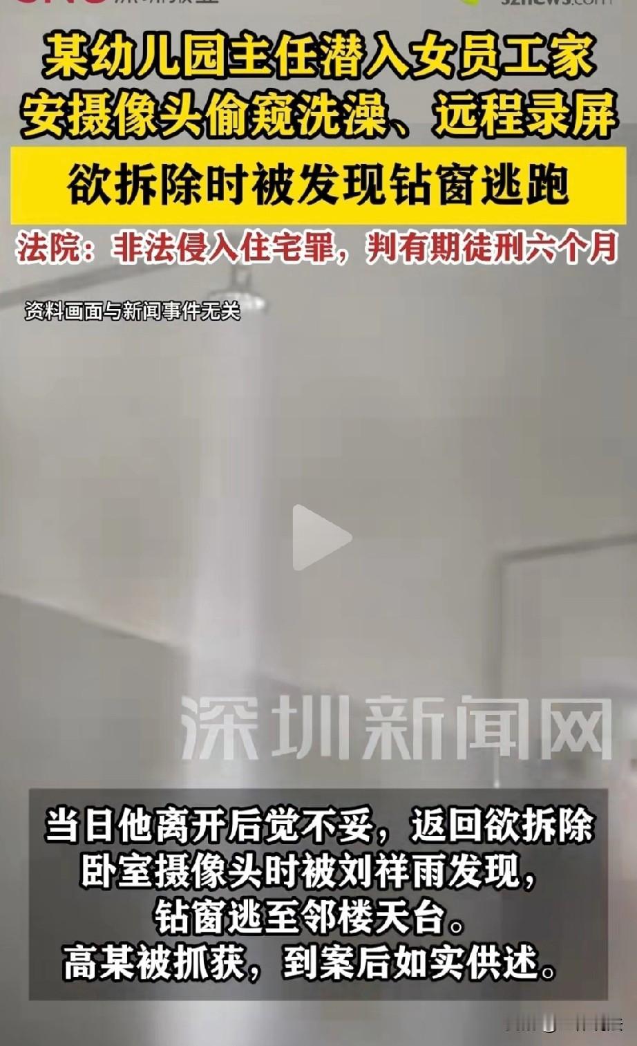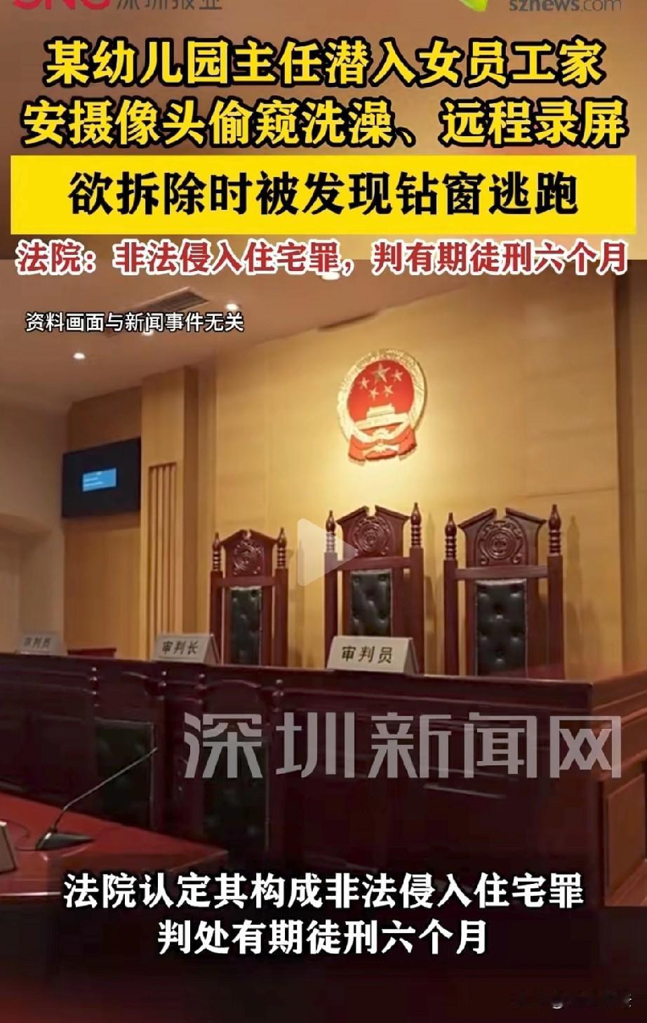 上海,男子是某幼儿园后勤部主任,觊觎独居女员工的美色,他利用职务便利,偷偷留存了女员工房间的钥匙,并在其卧室吊顶的射灯中安装摄像头,远程偷窥录制女员工的隐私。为了进一步满足他的不良癖好,男子又在女员工的卫生间安装摄像头。后来,男子返回卧室拆除摄像头时,被女员工发现,报警后,男子终于悲剧了。 2024年,上海某幼儿园的后勤部主任高某,看到单位的女员工刘某年轻漂亮,他渐渐对刘某动起了歪心思。 高某觊觎刘某的美色已久,看着她一个人租房住,心里的邪念一天天滋长。 他仗着自己管后勤的便利,悄悄留存了刘某住处的备用钥匙,心里暗暗盘算着,要找机会偷窥对方的隐私。 一旦有了偷窥的想法,高某心里像猫爪挠心一般,他实在忍不住,就在网上买了针孔摄像头。 趁着刘某上班不在房间,高某拿着钥匙偷偷潜入对方的屋子。 第一次进屋后,他紧张得手心冒汗,生怕邻居撞见,动作却很麻利,很快就把摄像头藏在了卧室吊顶的射灯里,调整好角度。 有了摄像头,高某就随时可以通过远程查看刘某卧室的动态,甚至还可以偷偷进行录屏。 悬在头顶的这个摄像头,刘某始终不知道,高某也更加大胆起来。 偷窥了几天,高某的欲望越来越强烈,又打起了偷窥刘某洗澡的主意。 他再次网购摄像头,如法炮制潜入出租屋,把摄像头安在了卫生间吊顶的检修口,这下连卫生间的情况也能看得一清二楚。 可刚装好卫生间的摄像头离开,高某心里又犯起了嘀咕:卧室里的摄像头会不会太明显?万一被她发现,可就全完了。 思来想去,他决定返回出租屋拆除卧室里的设备。 万万没想到,他刚进屋开始拆摄像头,刘某就因为身体不舒服提前下班回来了。 听到开门声的瞬间,高某吓得魂飞魄散,顾不上收拾现场,慌不择路地从窗户钻出去,一路逃到了隔壁楼栋的天台躲着。 刘某一进卧室,就看到被翻动过的射灯和散落的工具,再联想到最近总觉得家里有不对劲的地方,瞬间反应过来自己被偷窥了,立刻掏出手机报了警。 警方赶到后,很快就顺藤摸瓜追查到了高某,还在他身上搜出了还没来得及处理的摄像头配件。 紧接着,民警又在卧室射灯和卫生间检修口,找到了他安装的两个针孔摄像头。 被带回派出所后,面对铁证如山,高某心理防线彻底崩溃,如实供述了自己非法侵入住宅、安装摄像头偷窥的全部罪行。 他懊悔不已,早知如此,当初就不该被一时的邪念冲昏头脑。 法院审理认为,高某未经他人同意,多次非法侵入他人住宅,且出于偷窥目的安装摄像头,严重侵犯了刘某的住宅安宁权和隐私权,其行为已构成非法侵入住宅罪。 《刑法》第二百四十五条规定:非法搜查他人身体、住宅,或者非法侵入他人住宅的,处三年以下有期徒刑或者拘役。司法工作人员滥用职权,犯前款罪的,从重处罚。 住宅是公民享有安宁权与隐私权的核心空间,受法律严格保护,未经主人同意不得非法侵入。 高某利用职务便利留存刘某房间备用钥匙,先后两次趁刘某不在家时潜入出租屋,并非法安装针孔摄像头,属于未经住宅主人同意,非法强行闯入他人住宅。 其侵入行为并非单纯的物理进入,而是以偷窥隐私为目的,严重破坏了刘某的住宅安宁权,且两次侵入的情节具有持续性与主观恶意,远超“情节显著轻微”的范畴。 《刑法》第二百五十三条规定:违反国家有关规定,窃取或者以其他方法非法获取公民个人信息,情节严重的,处三年以下有期徒刑或者拘役,并处或者单处罚金;情节特别严重的,处三年以上七年以下有期徒刑,并处罚金。 刘某在卧室、卫生间的活动画面及相关私密场景,属于受法律保护的个人敏感隐私信息。 高某通过非法侵入住宅、安装针孔摄像头的方式,秘密窃取并远程录制上述私密信息,客观上实施了“以其他方法非法获取公民个人信息”的行为。 从情节来看,其在卧室、卫生间两个核心私密空间安装摄像头,持续偷窥录制,严重侵犯刘某隐私权,已达到“情节严重”的入罪标准。 结合高某到案后如实供述自己的罪行,具有坦白情节,法院最终认定高某构成非法侵入住宅罪,依法判处其有期徒刑六个月。 一场因色欲熏心引发的违法闹剧,让高某丢掉了体面的工作,还身陷囹圄。