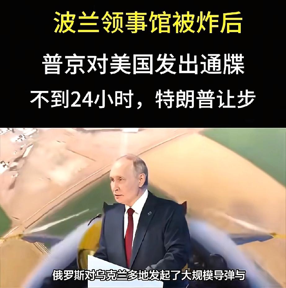 波兰领事馆被炸后, 普京对美国发出通牒,不到24小时,特朗普让步! 波兰领事馆遇袭后,普京直接向美国发出警告,特朗普却在24小时内突然松口!国际局势急转直下,三件大事接连让全球目光聚焦。 凌晨的敖德萨,夜空被火光撕裂,俄军发射的导弹如雨点般砸向乌克兰,连波兰领事馆的窗户都被震碎了。普京这步棋显然是冲着北约来的,英国防大臣的专列还差点被导弹“误炸”,伦敦马上就表态要给乌克兰送远程导弹。更让人意外的是,俄罗斯外交部直接警告美国:要是敢动伊朗,那就直接摊牌! 更戏剧性的是,一向强硬的特朗普居然在24小时内变了口风,从说要“马上动手”变成了“先搞外交”。背后原因很简单:美军高层集体反对,他们怕俄罗斯和伊朗联手把航母给击沉了。同一时间,哈萨克斯坦的油轮在里海莫名其妙地被袭击了,谁是幕后黑手到现在都没查清。 最硬气的还是普京,面对特朗普说要去抢委内瑞拉石油的威胁,俄罗斯直接放话:“那些资产都是俄罗斯的!”网友们都炸开了锅:这哪是领事馆被炸那么简单?分明是普京在布一个大局啊! 接下来国际局势还会怎么变?你觉得普京这步棋能稳住局面吗?评论区聊聊你的看法!