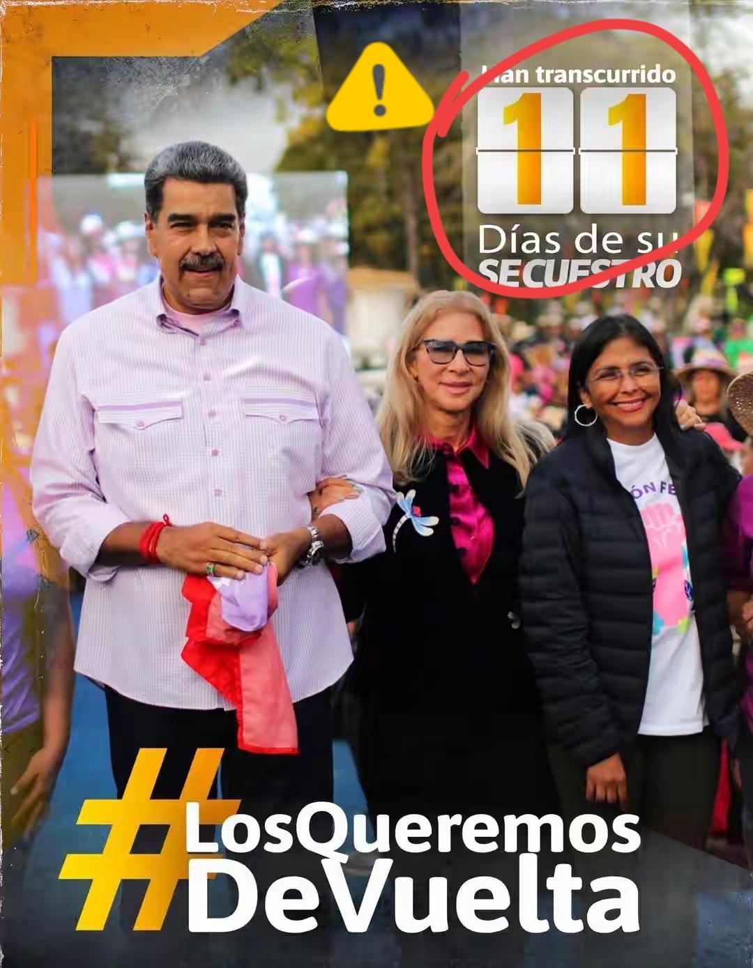 热点新闻! 马杜罗账号发“被绑11天”照,难道美国还给他网络上网了? 2026年1月13日,马杜罗社交账号突现一张三人同框照,引爆全球舆论! 画面里马杜罗、妻子西莉亚·弗洛雷斯与代总统德尔西·罗德里格斯在人群中行走,右上角鲜红大字“被绑架已过去11天”,下方醒目标签“我们要他们回来”,底部标注马杜罗为“委内瑞拉玻利瓦尔共和国总统”,妻子是“第一斗士(第一夫人)” ! 这张图满是政治火药味。美方称是“合法逮捕”,委方直接定性“绑架”,把马杜罗钉死为合法国家元首,妻子的“第一斗士”称号更是强化反美抗争人设,舆论战直接掀翻美方叙事根基! 发布者成谜,却精准戳中三重痛点:一是硬刚美国“跨境抓捕国家元首”的国际法红线;二是给委国内反美情绪添柴,凝聚民心;三是向国际社会喊话,逼美国回应。马杜罗之子同日发视频,转述父亲狱中宣言“我们一切都好,我们是战士”,与照片形成舆论呼应,把悲情牌打成抗争牌 ! 这不是普通配图,是委方在国际舆论场的绝地反击,每一个字都是武器。美国想靠抓捕搞政权更迭,却被这张图狠狠抽脸——你能抓走人,却锁不住一个国家的抗争意志! 最后送句中国俗语:得道多助,失道寡助。美国践踏国际法的野蛮行径,终将在全球声讨中自食恶果!