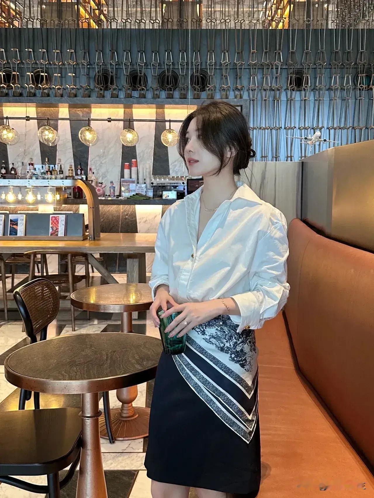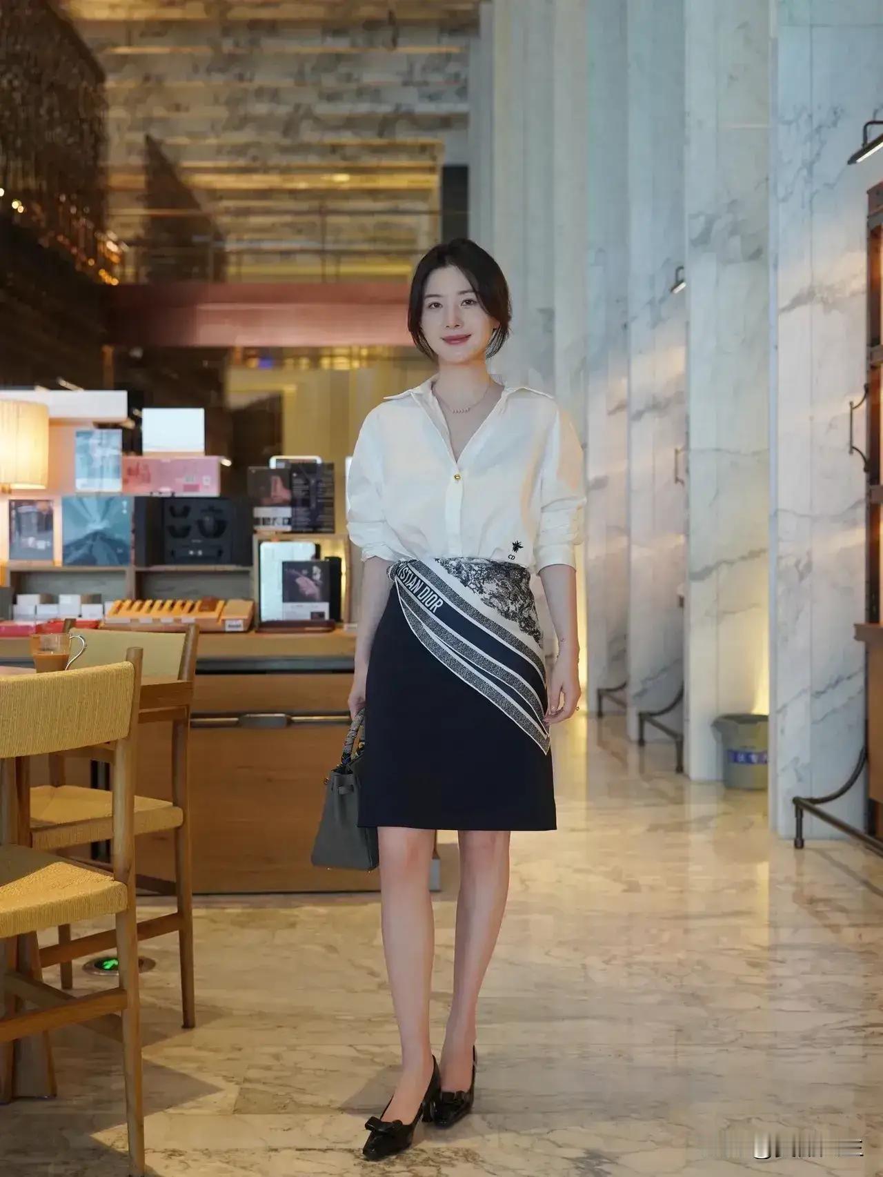 优雅白衬衫搭配印花裙,都市女性时尚穿搭