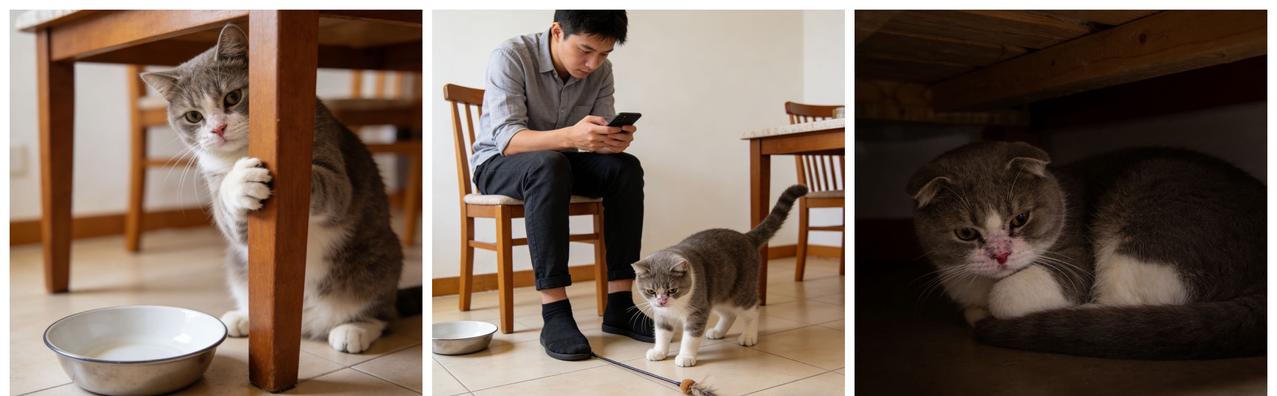 猫的沉默委屈:不会说话,是它们最大的“短板” 你是否也经历过这样的场景? 猫盯着空碗喵喵叫,你却以为它只想撒娇;猫抓沙发抗议,你却以为是调皮。最后它默默跳上冰箱顶,留给你一个背影——“算了,两脚兽不懂我。” 1. 有苦难言的日常 · 碗里没粮,只能刨桌腿暗示,却被骂“拆家”。 · 想玩逗猫棒,叼到你脚边,你却埋头刷手机。 · 身体不舒服,只能躲床底硬扛,直到病情严重。 2. 人类的“误解”现场 网友@喵奴日记吐槽:“我家猫连续三天把玩具扔进水盆,后来才发现,它是想告诉我饮水机坏了!” 多少猫的智慧,败给了人类的粗心? 3. 但它们从未放弃表达 蹭手是“我爱你”,轻咬是“陪陪我”,飞机耳是“我不爽”…… 猫在用全身语言疯狂输出,而我们只接收了10%。 4. 试着做个“猫语十级学者” · 观察尾巴:竖起来是开心,拍打地面是烦躁。 · 听懂叫声:短促“喵”是打招呼,长音“喵呜”可能是有需求。 · 关注反常:突然躲藏、过度舔毛,可能是生病信号。 它们不会说话,却把最柔软的肚皮袒露给你。 下次看到猫在你键盘上踱步,不妨停下手头工作——也许它等了太久,只想说一句: “别看屏幕了,看看我吧。” 你家猫有哪些无声的抗议?
