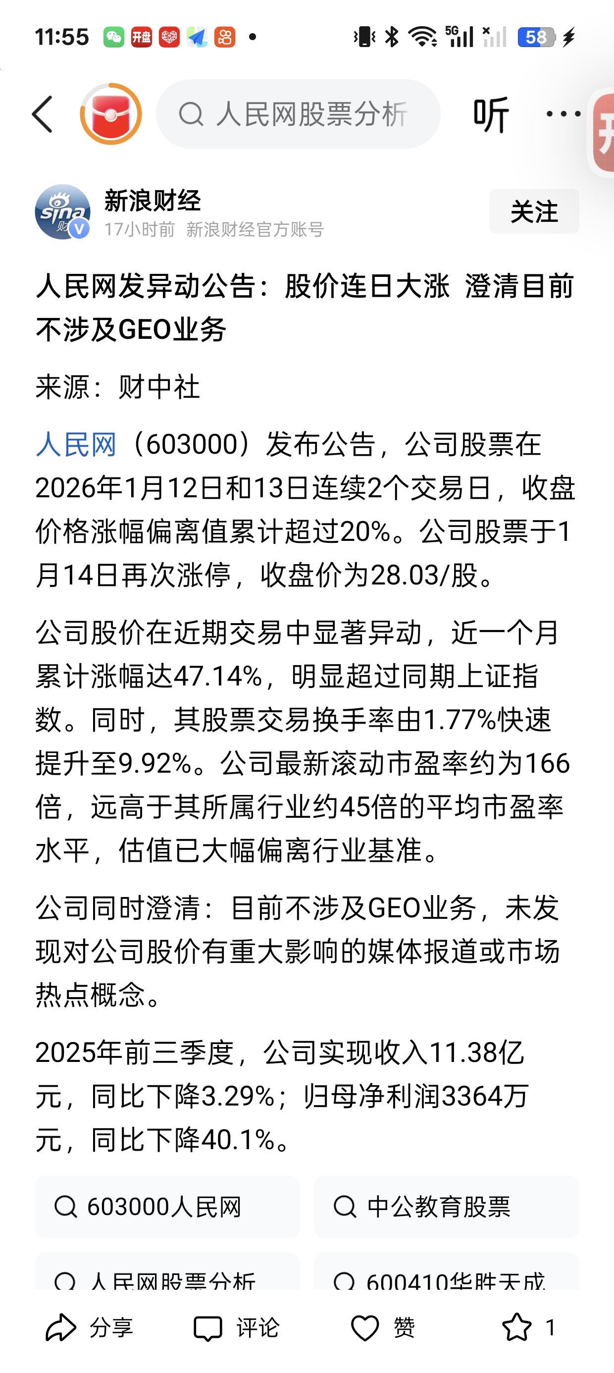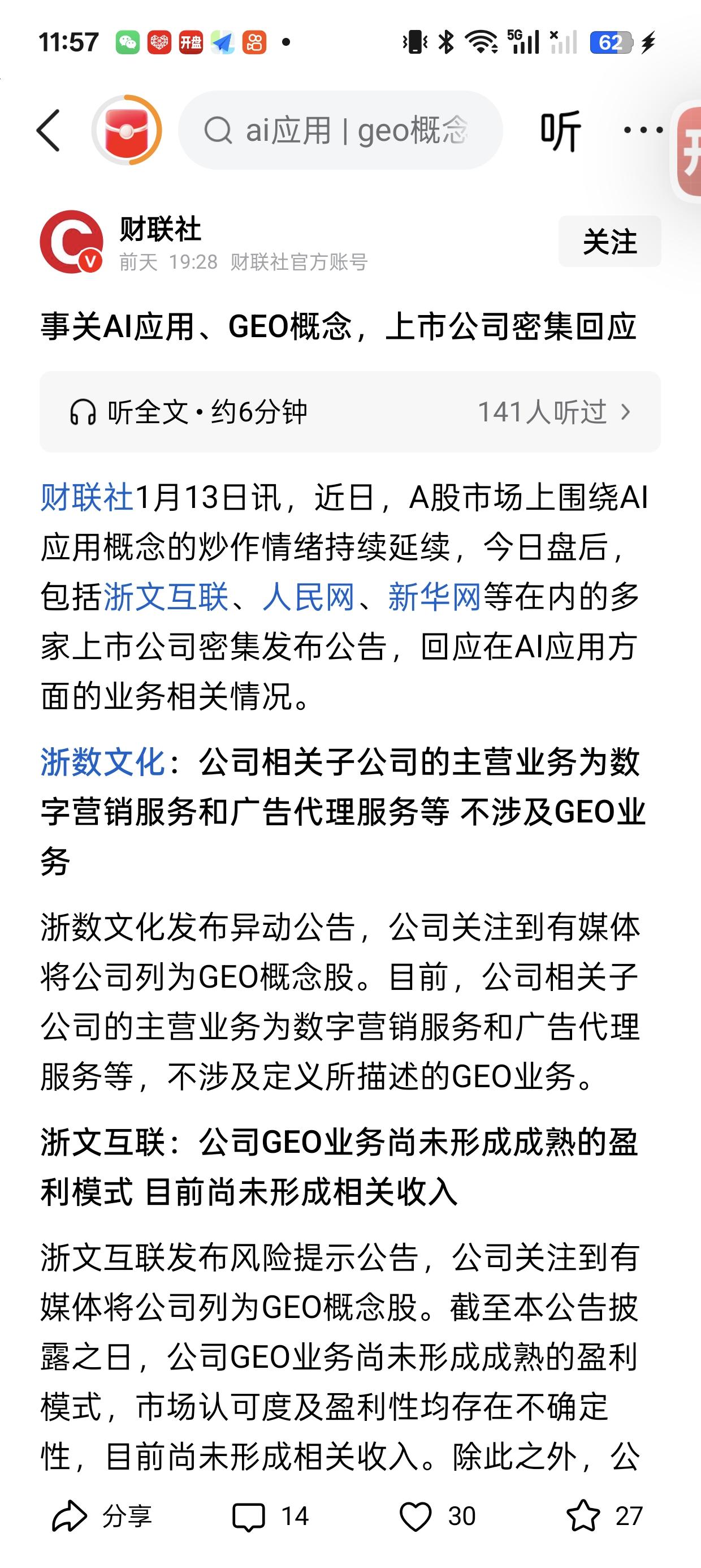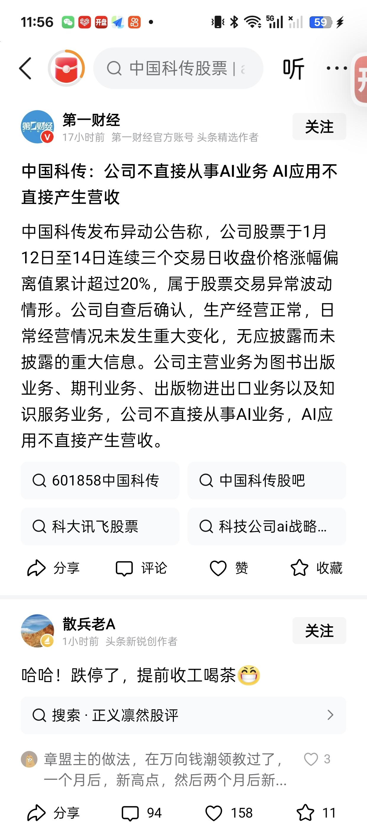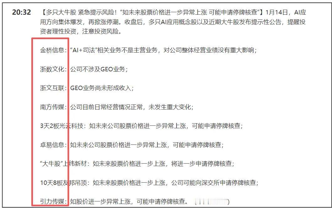 A股。今天1月15号(周四),中午收盘了。今天大盘缩量下跌,前期涨幅大的个股,跌的非常惨烈。 昨天下午调高融资比例,晚上ai应用,果然迎来了,高层吹的黑哨。另外晚上多只大牛股,发布监管异动利空。昨晚文章中也说了,晚上就看ai应用软件,会不会出监管,昨晚果不其然,出了监管信号。这两大黑哨,同时吹,就是要给市场降温。 昨天中午文章,我已经告诉你们,只要大盘出现跳水,或者跌破5日线,就要降低仓位。不知道你们有没有,看我的文章,选择降低仓位。我昨天下午跳水出掉一个,还剩下一个昨天涨停的票,今天上午,亏了一些已经全出了。这次我已经提示你们,跳水要降低仓位了,不知道你们,有没有操作。 为什么很多人亏钱,就是不懂得卖,总想着还能涨,在市场里一定要,懂得戒掉贪念。哪怕卖飞,也要锁定利润,不然你很难在,这个市场赚钱。 我现在还没开仓,等等看,让子弹再飞一会儿,下午或者明天,再看要不要开仓。