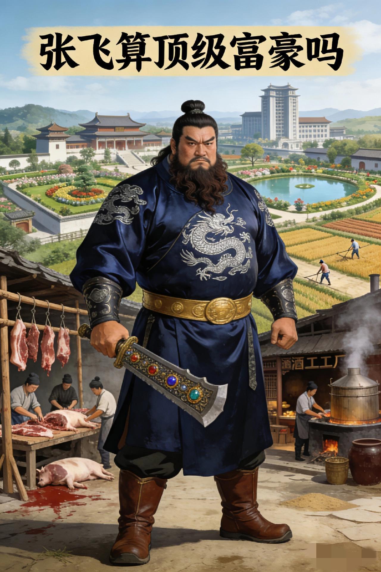 论三国隐藏富豪,张飞能算一个吗? 他的家财换算到今天, 是什么水平? 首先,来看张飞的核心资产 土地:保守估算有100亩,乐观点能到1000亩,东汉中等田地单价约5000钱/亩,对应价值50万到500万五铢钱。 产业:垄断了涿郡的屠宰和酿酒生意,现金流非常稳定;他家的桃园能摆下300人的宴席,附带宅院和工坊,估值至少50万到100万五铢钱。 现金流:当年桃园三结义后,他能一口气招募300名士兵,还包揽了所有人的武器、甲胄和粮饷,这笔一次性支出就高达200万到300万五铢钱,家底厚度可见一斑。 总资产:保守算下来有150万到200万五铢钱,往乐观了估能到千万级五铢钱。 二,横向对比涿郡当地人群 普通自耕农只有10到30亩地,总资产也就5万到15万五铢钱,张飞的资产是他们的10到40倍。 中等庄园主的土地在50到200亩之间,总资产25万到100万五铢钱,张飞的家底差不多是他们的2到8倍。 县里顶级富豪的标准是资产百万钱起步、土地超百亩,张飞完全达标,甚至还要高出一截。 像糜竺那样的郡级巨富,资产能达到“巨亿”(超1000万钱),保守版的张飞比他稍逊,乐观版的张飞就能和他对标。 三、购买力粗略换算 东汉1石米约值50钱,1万五铢钱大概能买200石米,换算成现在的购买力差不多等于10万元。这么一算,张飞保守身家150万钱就相当于现在的1500万元,乐观的千万钱级别更是能达到1亿元,妥妥的县域头部富豪。 四、结论 论三国隐藏富豪,张飞必须有姓名! 涿郡有地有房有产业,屠宰酿酒一条龙,现金流厚到能直接起兵。 普通农户拼一辈子,资产才够他零头;中等地主在他面前,也就是个“勉强温饱”水平。 说白了,早期刘关张创业,就是“顶级富二代张飞带着两个兄弟搞事业”,这配置,想不成事都难!