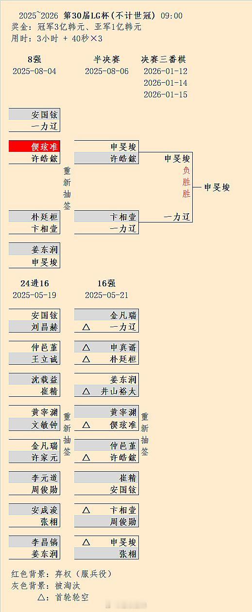 韩国2号朴廷桓击败1号申真谞,3号卞相壹击败2号朴廷桓。一力辽击败3号卞相壹,却没顶住4号申旻埈的逆袭。