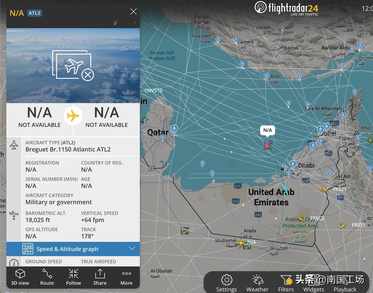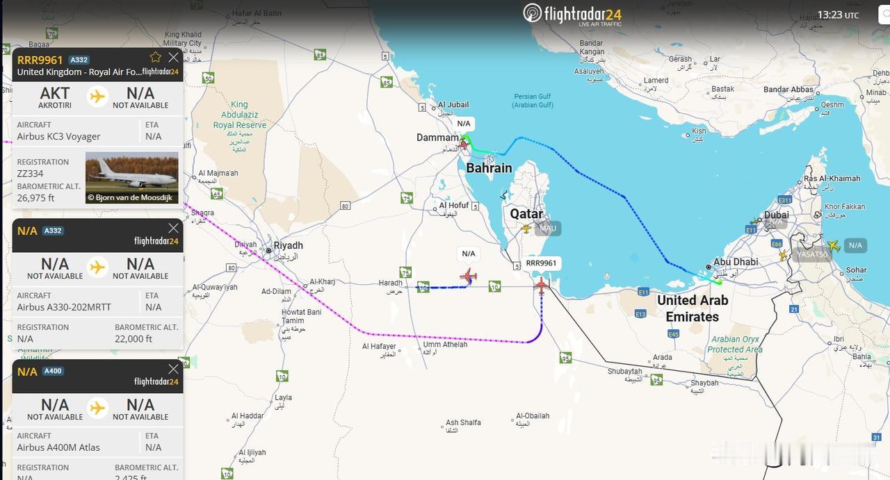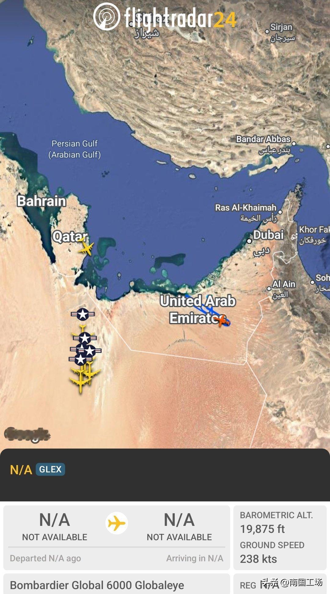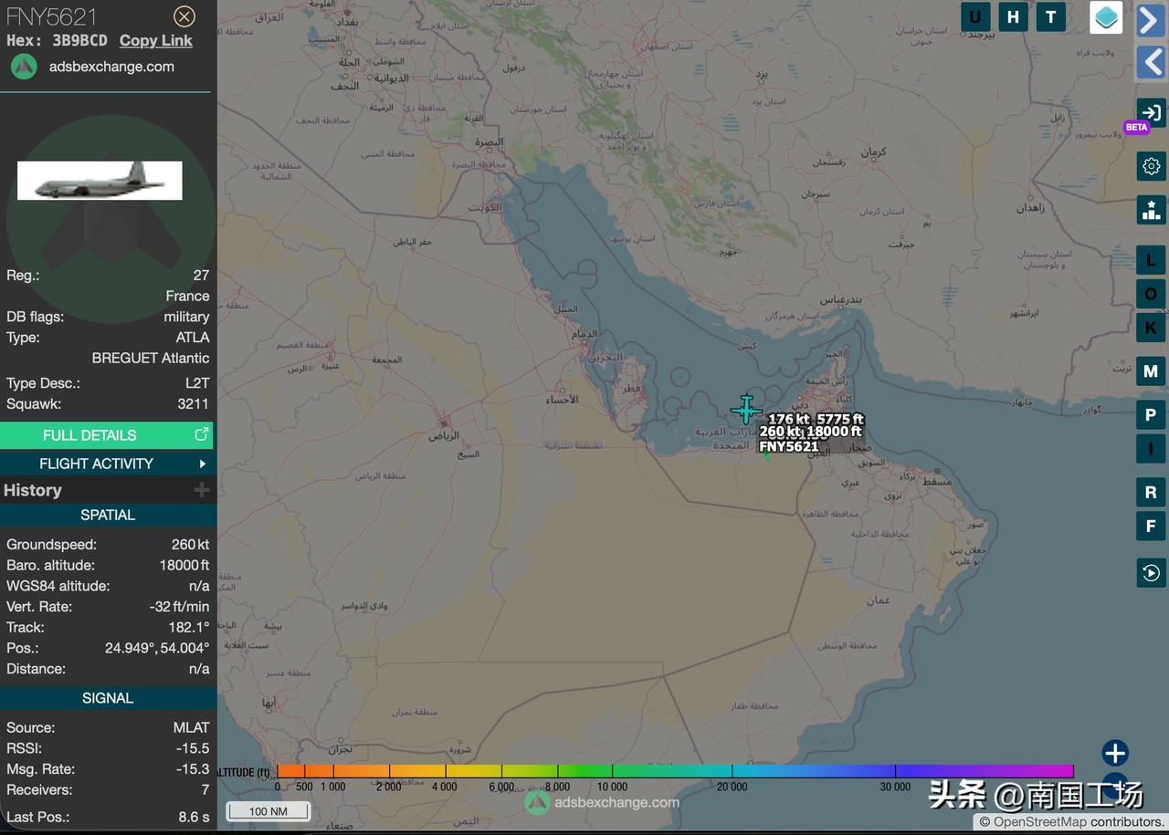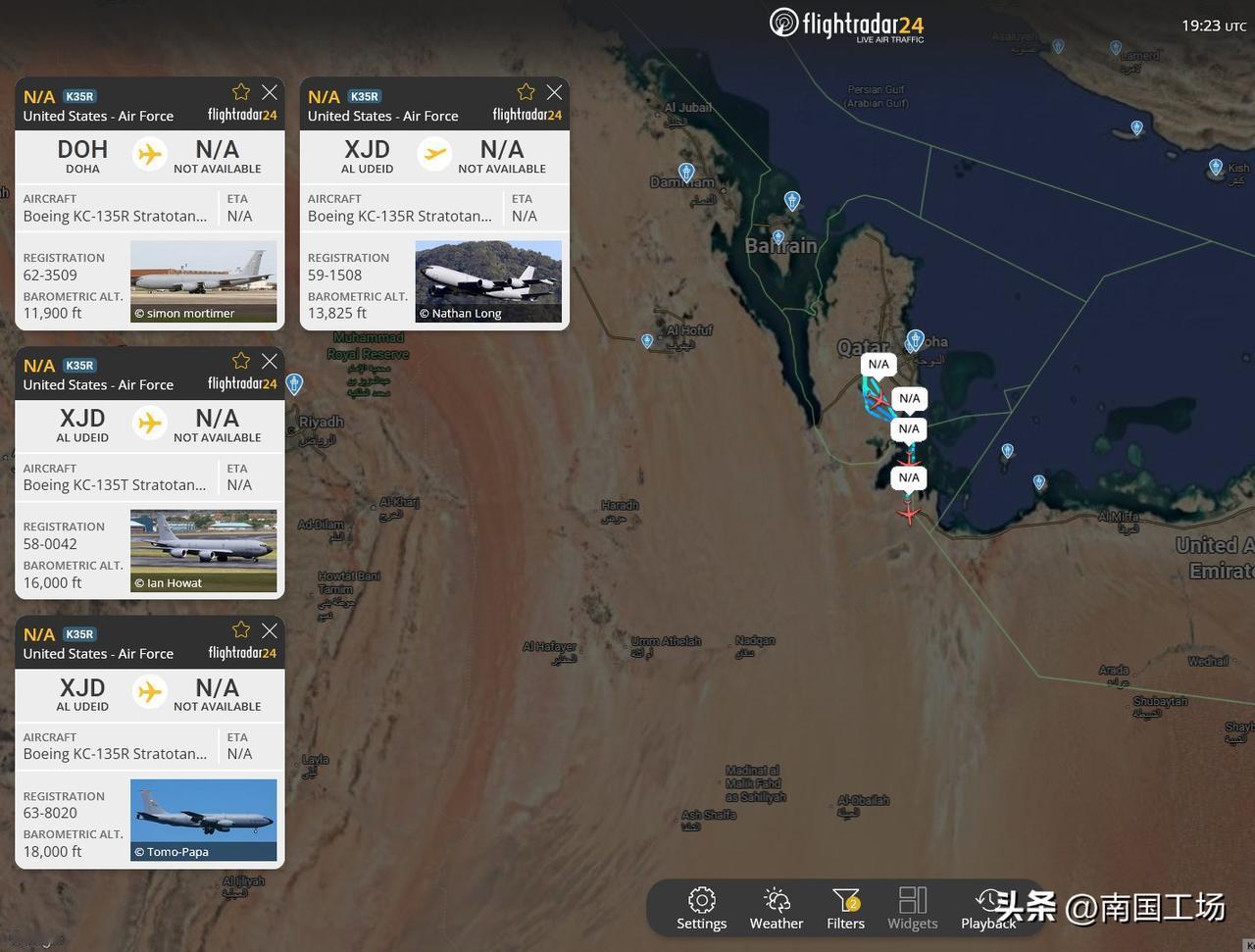 “中东上空乱成一锅粥!”当地时间2026年1月15日,目前随着美国当局威胁要对伊朗开战,目前中东地区乱成一锅粥,特别是伊朗周边国家和伊朗周边地区的军事力量:当地时间1月15日,美国空军从卡塔尔的阿尔乌代德空军基地大规模撤军,美国空军6架KC-135战略加油机,包括代号AE0484 62-3509,AE0375 58-0042,AE07C2 63-8020,AE07A8 59-1508,AE04B8 58-0018,AE04E8 60-0356等,在几分钟内相继升空,离开卡塔尔基地的原因尚不清楚。除了加油机,美国空军和英国空军,从卡塔尔阿尔乌代德基地进行了一系列疏散行动,多架C-17运输机离开了卡塔尔。 美国空军和英国空军,从卡塔尔阿尔乌代德基地进撤离行动,得到了卡塔尔空军F-15SA战斗机的支援:一架卡塔尔空军战斗机单独升空。美国方面的说法:“过去几小时内,美国、以色列和海湾国家正在进行的这场疯狂混乱,是我们从未见过的。阿联酋空军预警机战机已起飞,大批美军飞机正向南飞行。” 在1月15日,阿联酋空军一架特殊任务的,预警机,注册号1341,896C65,在阿联酋、波斯湾上空运行。 除了英国空军调动运输机,阿联酋空军升空预警机,监视波斯湾,伊朗情况,卡塔尔空军F-15战斗机升空,掩护英美空军大飞机撤离,法国海军的达索“猎户座-2”型侦察巡逻机出现在波斯湾,对伊朗进行抵近侦察。法国海军的达索“猎户座-2”型侦察巡逻机可以执行,反潜、反水面、情报、监视与侦察任务,对于以美国为首的多国联军部队,收集、监控波斯湾情报,至关重要。法国海军、法国空军目前多架战机,在阿拉伯海/波斯湾上空执行侦察情报任务。 还有一架来自北约的A-400运输机,也降落在卡塔尔,执行撤离任务。巴林皇家航班飞机从谢赫·伊萨机场起飞前往阿瓦利·萨基尔机场。伊萨是巴林地区一个军事设施,有美军在这个军事基地进行行动,这个基地还是巴林海军、美国海军舰队的驻地。