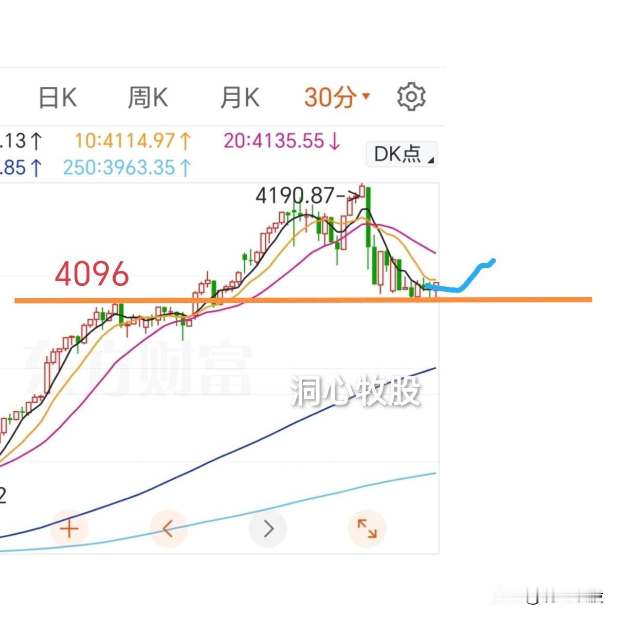 今天窄幅调整,上证收阴,深证成指、创业板指收阳,2200多只个股上涨,涨少跌多,市场情绪不高,明天能反弹吗? 今天虽然缩量回调,比昨天少了1万多亿,但成交量能仍然达到2.9万多亿,还是相当不错的,市场参与度还是很高的。 从大盘走势来看,30分钟k线图中,昨天说了,有望在4096处止跌,今天最低点4096.85,虽然没有形成反弹,但在此止跌维持震荡,基本符合预期。 明天有可能会小幅反弹,或继续小幅震荡,盘面总体似乎已稳定。 如果跌破4096点,就要谨慎对待,恐怕反V顶部形成,谨防恐慌踩踏! 市场多变,涨跌难料。谨慎操作,不对就跑。 投资有风险,入市需谨慎。仅个人观点,不作为投资建议!股市收盘点评 A股指数 上证指数