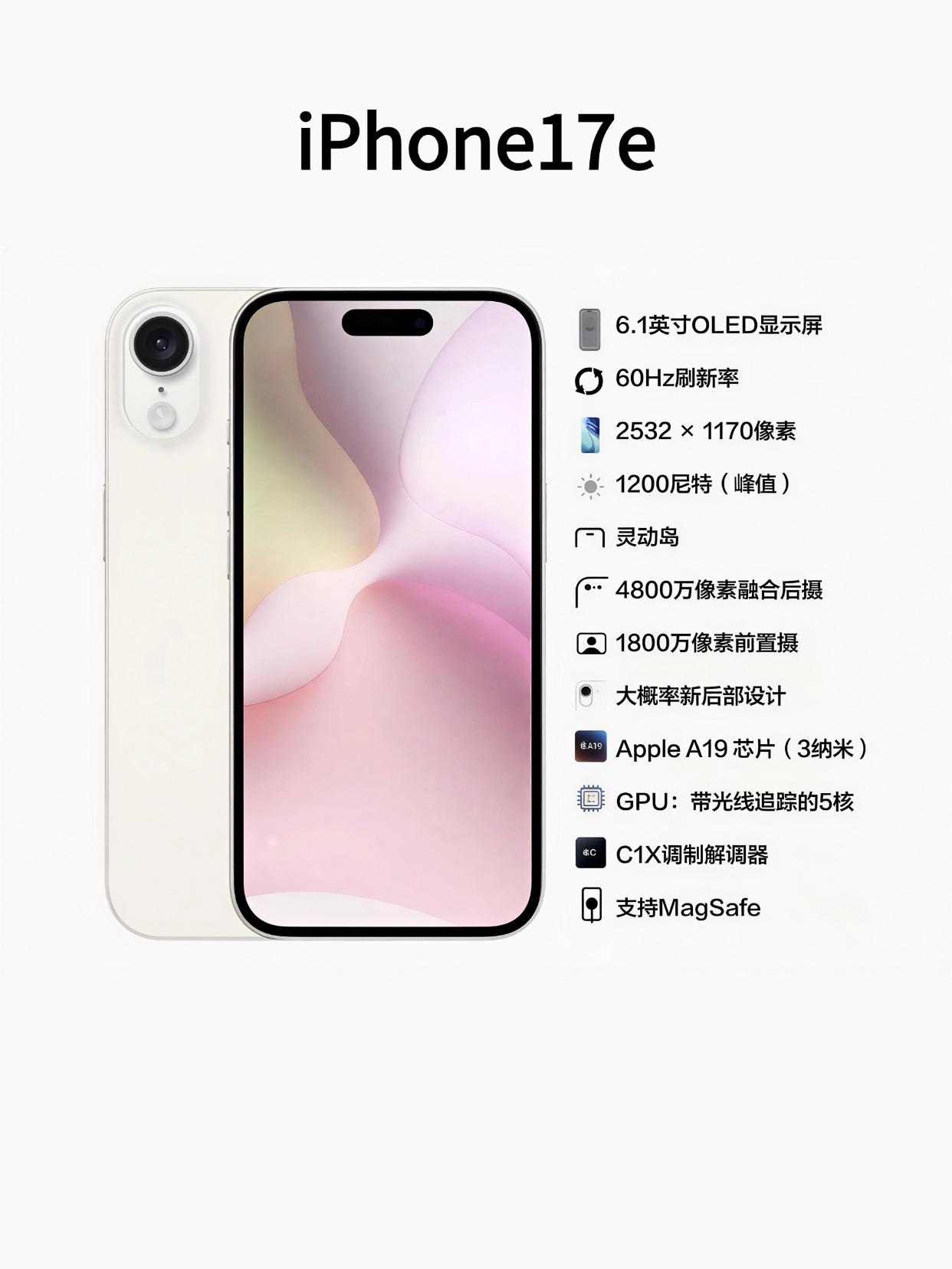 iPhone 17e来了,这外观也太炸裂了吧...... iPhone 17e爆料上半年发布,屏幕升级,从刘海换成灵动岛,但还是60hz,芯片换成iPhone 17同款A19,另外就是新外观了,看完感觉真有点炸裂啊 这个单摄背板你说这是xr我都信了,粉色款倒是挺好看的,但这2渐变色的配色,是有点夸张的...... 不过真假还不好说,要是真长这样的话,大家会考虑入吗?