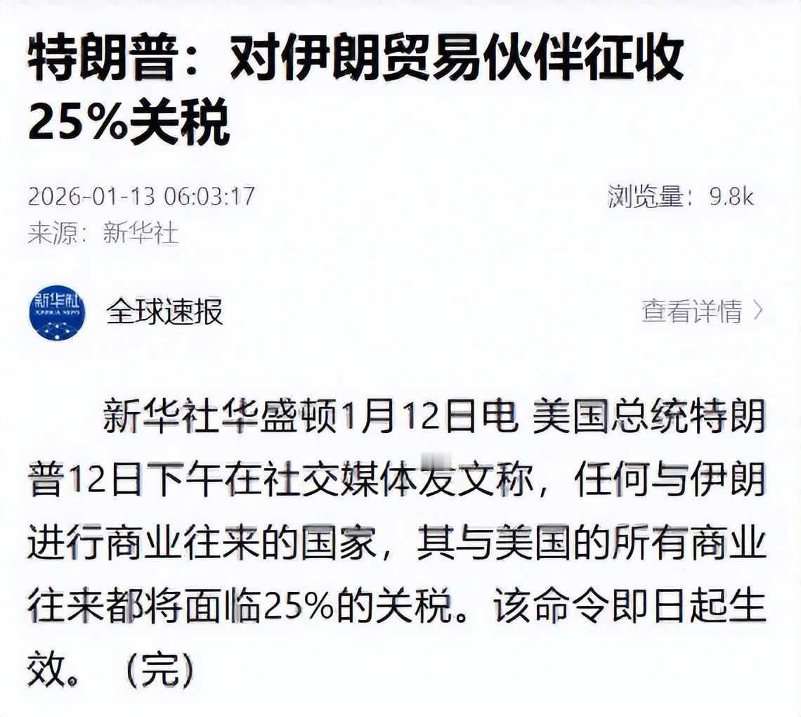 沙特急了,美国疯了,海湾国家开始自己算账 2026年1月12日,美国突然宣布对与伊朗做生意的国家加征25%的关税,这措施表面上针对伊朗,实际上把沙特、卡塔尔和阿曼等周边国家也牵扯进来,这些国家原本无意卷入纷争,却因此遭受打击,沙特迅速作出反应,派人劝说美方停止这一做法,这不是出于善意,而是出于实际担忧。 沙特和伊朗关系好转,不是因为感情变好,而是因为钱的问题,沙特推出“2030愿景”,打算投入十二万亿里亚尔推动经济转型,这需要一个稳定的环境,如果伊朗局势动荡,或者美军介入,油价就会剧烈波动,资本纷纷逃离,难民大量涌入,沙特的计划就全完了,更麻烦的是,伊朗那边的什叶派动员可能影响到沙特国内,带来更大风险,所以沙特宁愿坐下来跟老对手谈判,也不愿看美国把事情搞乱。 霍尔木兹海峡这个地方,情况很关键,伊朗方面早就表示过,如果采取行动,就会封锁这条通道,每天有1300万桶石油从这里经过,占到全球海上运油量的三分之一,沙特、阿联酋和卡塔尔的出口物资,超过八成依赖这条水路,如果它真的被堵住,运输费用会飙升到很高,保险费用也跟着猛涨,外汇收入难以收回,沙特的财政马上就会紧张起来,这些国家不是不担心伊朗,而是更害怕自己撑不住。 伊朗不是纸老虎,他们拥有两千多枚导弹,随时可以发射,去年底还运来一千吨固体燃料,并且持续在生产,军队分为正规军和革命卫队两部分,正规军负责常规作战,革命卫队专门搞导弹、无人机和城市游击战,再加上西边的扎格罗斯山脉像一道天然城墙挡着,敌人想要大部队推进根本行不通,这些都是实打实的实力。 美国这次制定的关税政策,实际上让它的盟友遭受了损失,像阿曼、阿联酋和卡塔尔这些国家,平时跟伊朗做些小生意,买卖药品和粮食,出口天然气和机械,现在全被列入连带制裁的名单里,它们不是不愿意选边站,而是实在不能跟自己的经济利益过不去,经济压力大了,谁还顾得上你是不是民主的榜样,现实情况比空洞的口号更有说服力。 这些海湾国家现在一起停手,不是要支持伊朗政府,而是担心自己日子过不下去,以前跟着美国走是为了安全,现在发现美国政策反而让安全没了,财政要稳定,物流要通畅,社会不能乱,这才是他们真正在意的,意识形态早就不重要了,谁能让他们的钱袋子不缩水,谁就有话语权,这不是背叛,只是生存本能。 我总觉得,这种时候最能看出一个国家的底色,嘴上喊着盟友,实际连饭碗都保不住,那联盟就是空壳子,沙特他们现在选择冷静处理,不是软弱,是清醒,美国再怎么施压,也压不过石油价格波动带来的连锁反应,钱的问题,从来都是最硬的道理。 中东这盘棋早就不是美国和伊朗两家在下了,海湾国家开始自己拿主意,谁能带来稳定、提供市场,他们就愿意和谁合作,美国那种非黑即白的思路在这里越来越行不通,他们可能还没想明白,真正的对手不是伊朗,而是他们自己那套过时的做法。
