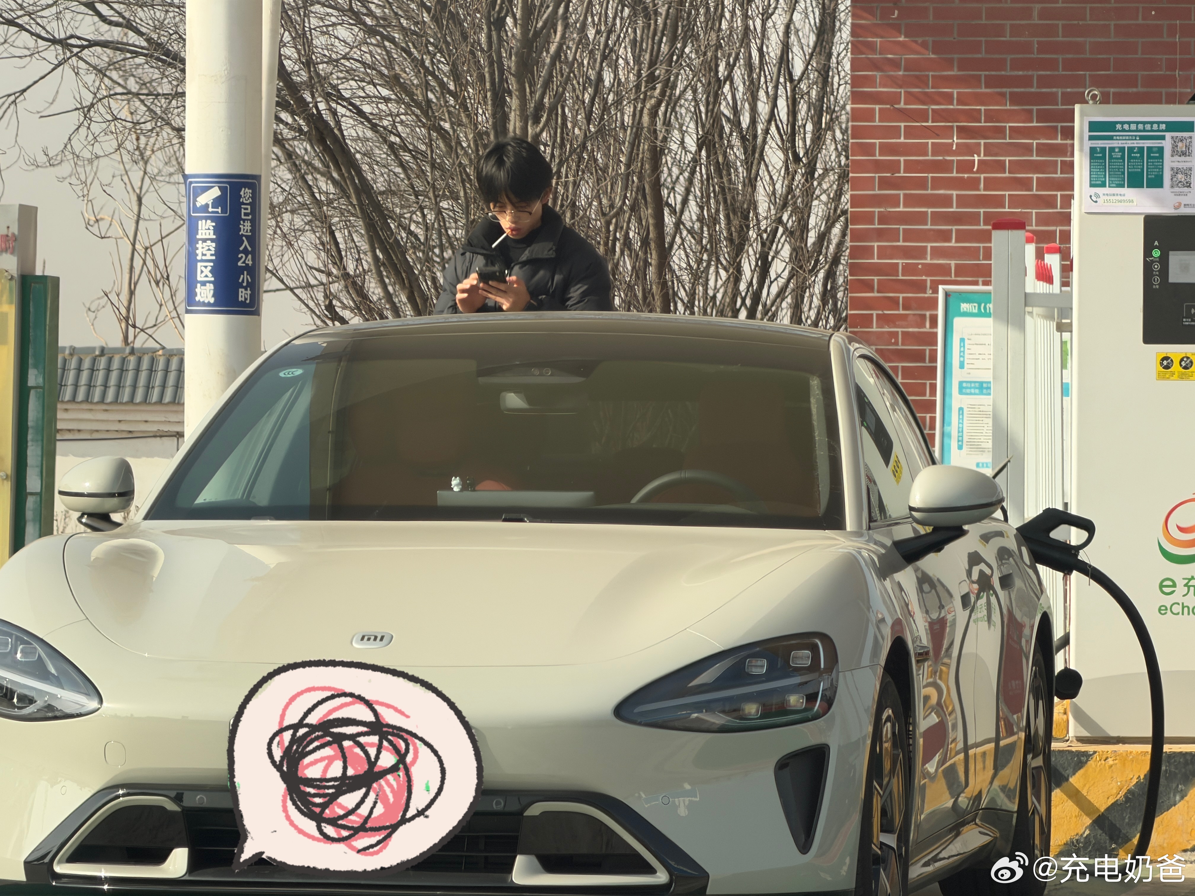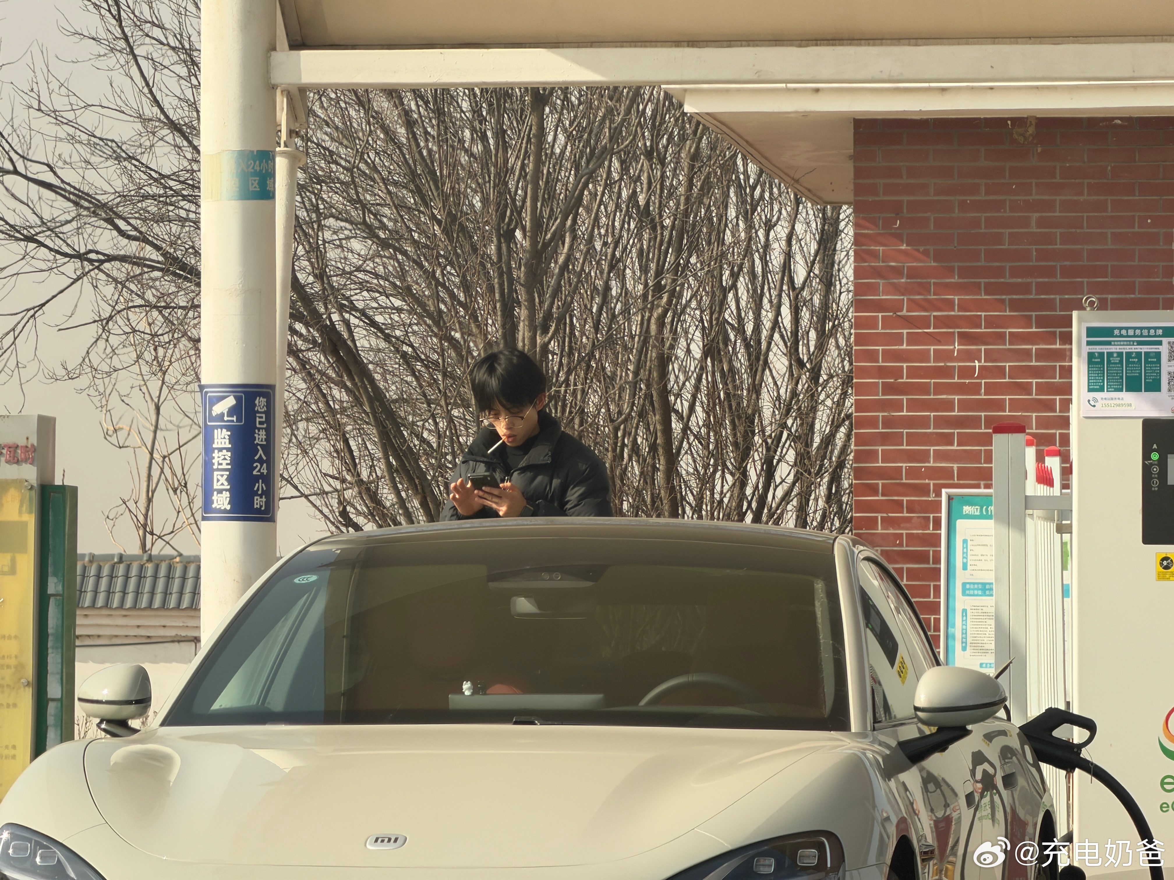 为什么要有人群画像这个东西呢?因为是真的准,旁边充电的问界M7,车主老两口应该有120岁往上,对面的小米SU7车主司机就是抽烟的这个,然后3个大爷压车(图3)小米su7小米汽车