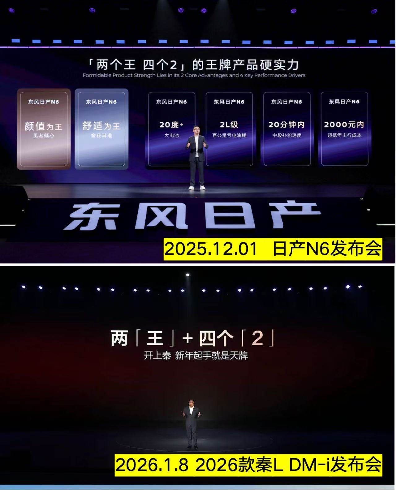 东风日产N6去年12月上市带火的“两个王四个2”插混理念,没想到比亚迪新款秦家族也用上了,这也算是两家车企之间的“撞衫”了。日产高管欢迎同行做大插混市场热门插混家轿撞衫比亚迪和日产的两款插混车各有各的好,日产N6靠87%得房率的宽适空间和零压座椅主打舒适,而比亚迪秦家族则把纯电续航拉到210km,加以更低的售价,主打实用。接下来插混市场的趋势很明确,大电池、长续航、低油耗就是接下来的主要竞争方向。日产N6还有央企合资的品质背书和“自燃包赔”服务。除了上面两家主打插混的车企,也希望更多车企加入这个“俱乐部”,拿出更多压箱底有竞争力的技术出来,咱们让消费者能选到更靠谱的插混车型!阿远说车